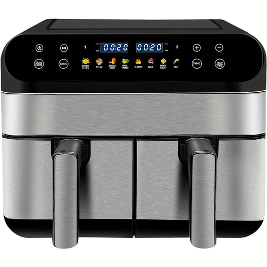 1800W 9L Double Air Fryer with 2 x 4.5L Independent Baskets, Dual Zone Family Size Healthy Oil-free Air Fryer Oven, Cookbook, 10 Presets & Digital LED Display