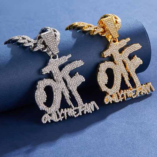 Double Row Letter Pendant, Iced Out Cuban Chain, Zinc Alloy And Cubic Zirconia, Hip Hop Jewelry For Men And Women
