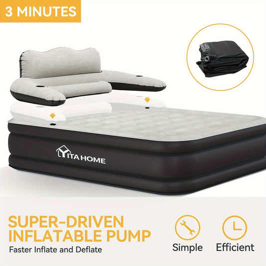 Queen Size Air Mattress With Headboard, 18in Inflatable With Pillow, Blow Up Mattress With Removable Electric Pump, Comfort Air Bed Queen For Camping & Home