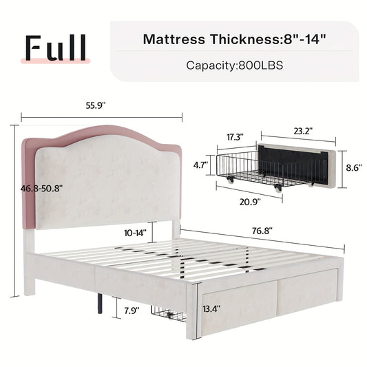 FULTRU Full/Queen/King Size Bed Frame with Storage Headboard, Platform Bed Frame with Storage Headboard, Large Storage Drawers & Charging Station, No Box Spring Needed, Noise Free (White-PU, Cream-Velvet)