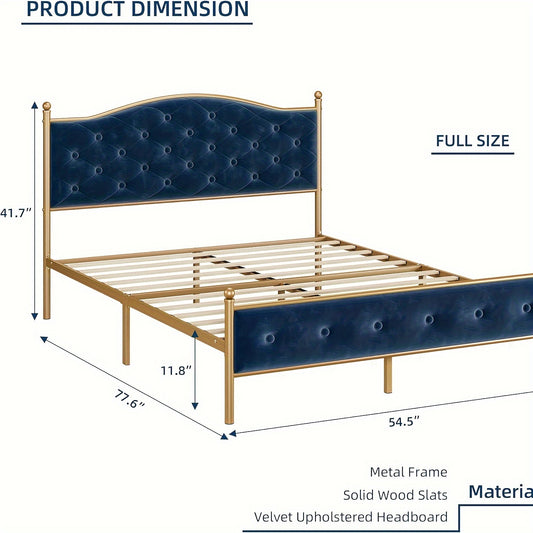 Full, Queen, King, White, Blue, Green, Senfot Bed Frame, Velvet Upholstered Platform Bed With Button Tufted Headboard, Heavy Duty Mattress Foundation With Solid Wood Slats Support, No Box Spring Needed