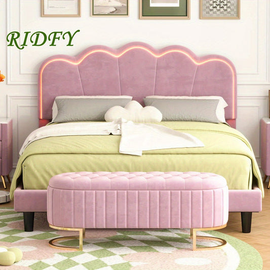 RIDFY 2-Pieces Bedroom Sets Full Size Upholstered LED Platform Bed With Storage Ottoman-Velvet, Pink