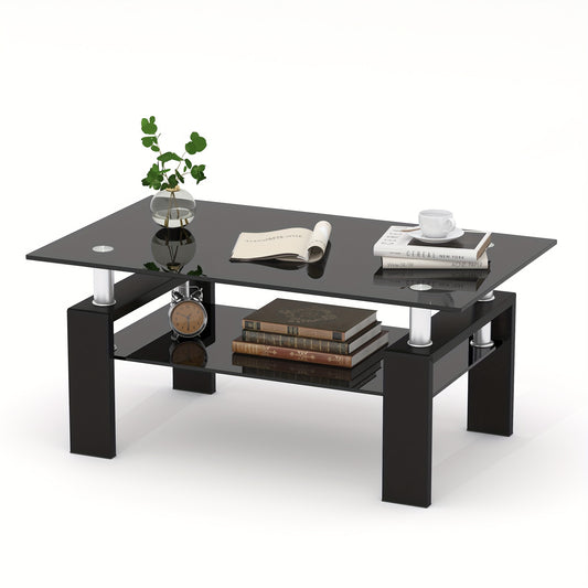 Rectangle Glass Coffee Table, Glass Coffee Tables For Living Room, Rectangle Clear Coffee Table For Home Office Or Conversation Leisure Occasions, Rectangle Glass Cocktail Table, Metal Leg, Black