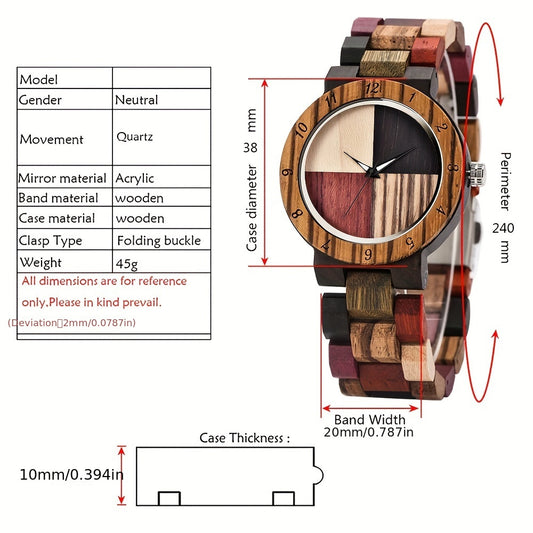 Ladies Plaid Wood Design Watch Lightweight Wooden Watches with Adjustable Strap and Stainless Steel Buckle Quartz Watches for Women