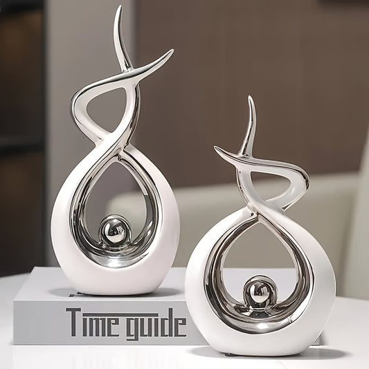 Set Of 2 Modern Flame Art Abstract Geometric Design Sculptures, Home Decor Modern Abstract Art Resin Sculptures, Office Desk Embellishment Restaurant Decoration, Living Room Decoration, Coffee Table Ornament