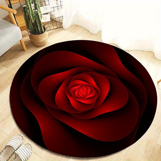 Red Rose Pattern Round Carpet Office Chair Mat, Non-Slip Fashion Decorative Polyester Chair Pad, Crystal Velvet 800g/m² - Diameter 150cm (59 inches)