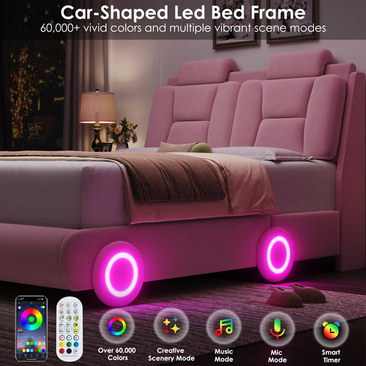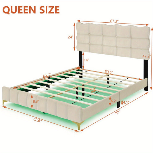 Velvet Platform Bed Frame with LED Frame and Stylish Mental Bed Legs, No Box Spring Needed