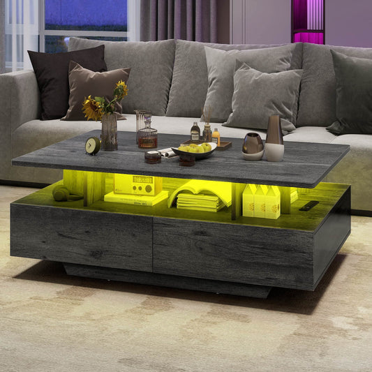 XeIsyo Lift Top Coffee Table, Coffee Table with Storages for Living Room, Rectangular Coffee Tables with 4 Spacious Drawers, Modern Coffee Table with LED Light, Grey