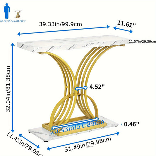 Xelsyo DEXTRUS 39" Console End Table with Faux Marble Top, Side Table for Living Room, Entryway, Gold