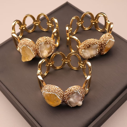 Women's Natural Baroque Odd-shaped Pearl Open Bracelet Chunky French Bracelet Middle East Ramadan European and American Fashion Personality Exaggerated Bracelet Titanium Steel Gold Plated Baroque Pearl Natural Stone Amethyst