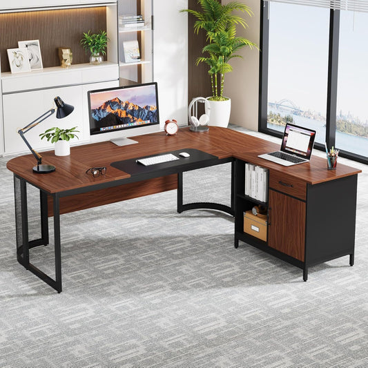 63-Inch Executive Desk - Large L-Shaped Desk with Drawer Cabinet & Storage Shelves - Corner Executive Office Desk - Business Furniture Set Workstation for Home Office - For Professionals & Entrepreneurs - Perfect for Home Off