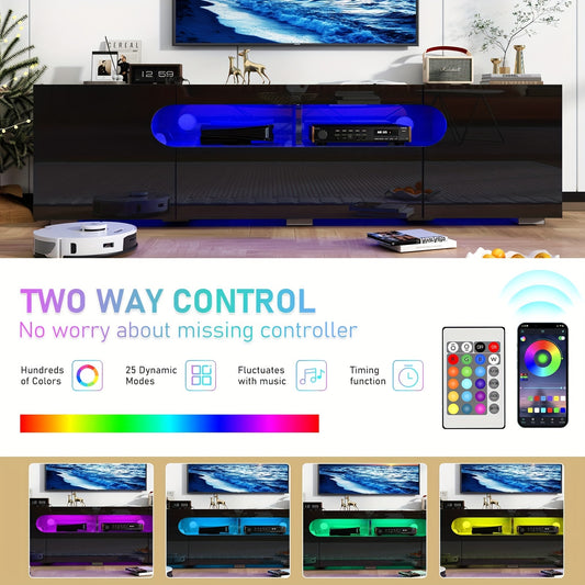 65IN LED TV Stand For 65/70/75inch TV, Modern Black TV Stand For Living Room, High Glossy TV Entertainment Center With Large Storage Drawer, APP RGB Light, TV Console, TV Cabinet (Black)