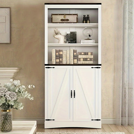 71 " Farmhouse Tall Storage Cabinet with Load-Bearing Steel Pipe Adjustable Shelves Kitchen Pantry Storage Cabinet with 2 Barn Doors Storage Cabinet for Kitchen Dining Room Bathroom ( White )