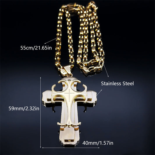 A Hip-hop Punk Double-layer Stainless Steel Cross Pendant Necklace For Men, Punk Jewelry Christmas Gift