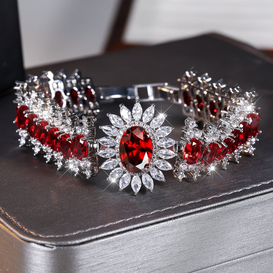 A Fine And Luxurious Red Synthetic Synthetic Zirconia Bracelet, A Fashionable And Versatile Ladies' Bracelet Suitable for Wearing At Parties And Banquets.
