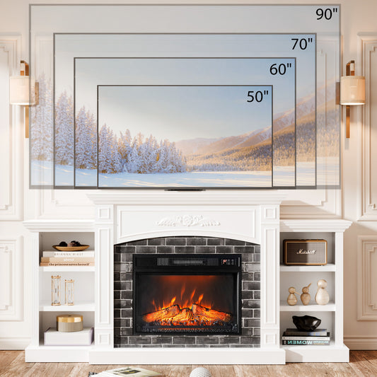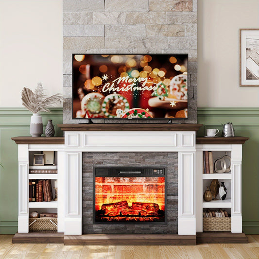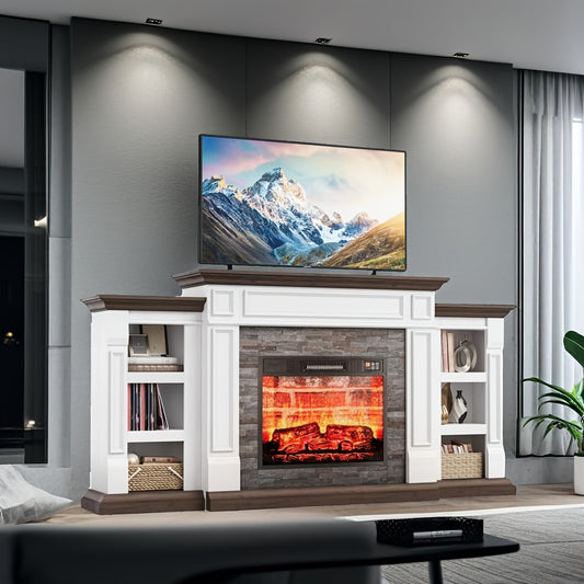 72" Electric Fireplace With Mantel, Fireplace TV Stand For TVs Up To 80 Inch, 1400W, Freestanding, Remote Control, Timer, Realistic Log And Flame Effect, Adjustable Temperature & Brightness For Home Bedroom Living Room Indoor