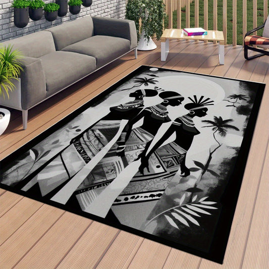 African Women Print Non-Slip Polyester Area Rug - 800g/m² Crystal Velvet, 1pc Large Size Floor Mat for Home, Living Room, Bedroom, Dorm, Garden Decor - Durable Chair Carpet with Anti-Skid Backing