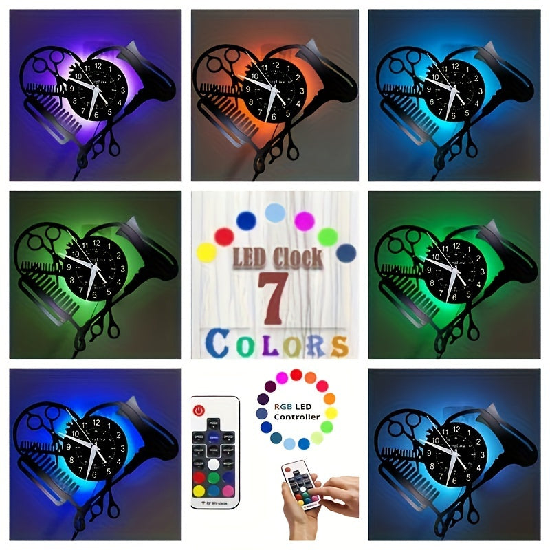 1 piece of caring hair cutting tool, vinyl wall clock for artistic decoration, creative design, silent wall clock for home decoration, living room, bedroom, hair salon, LED light