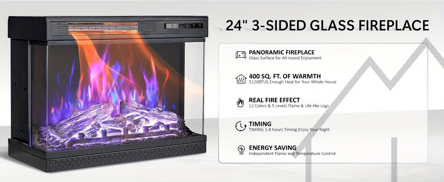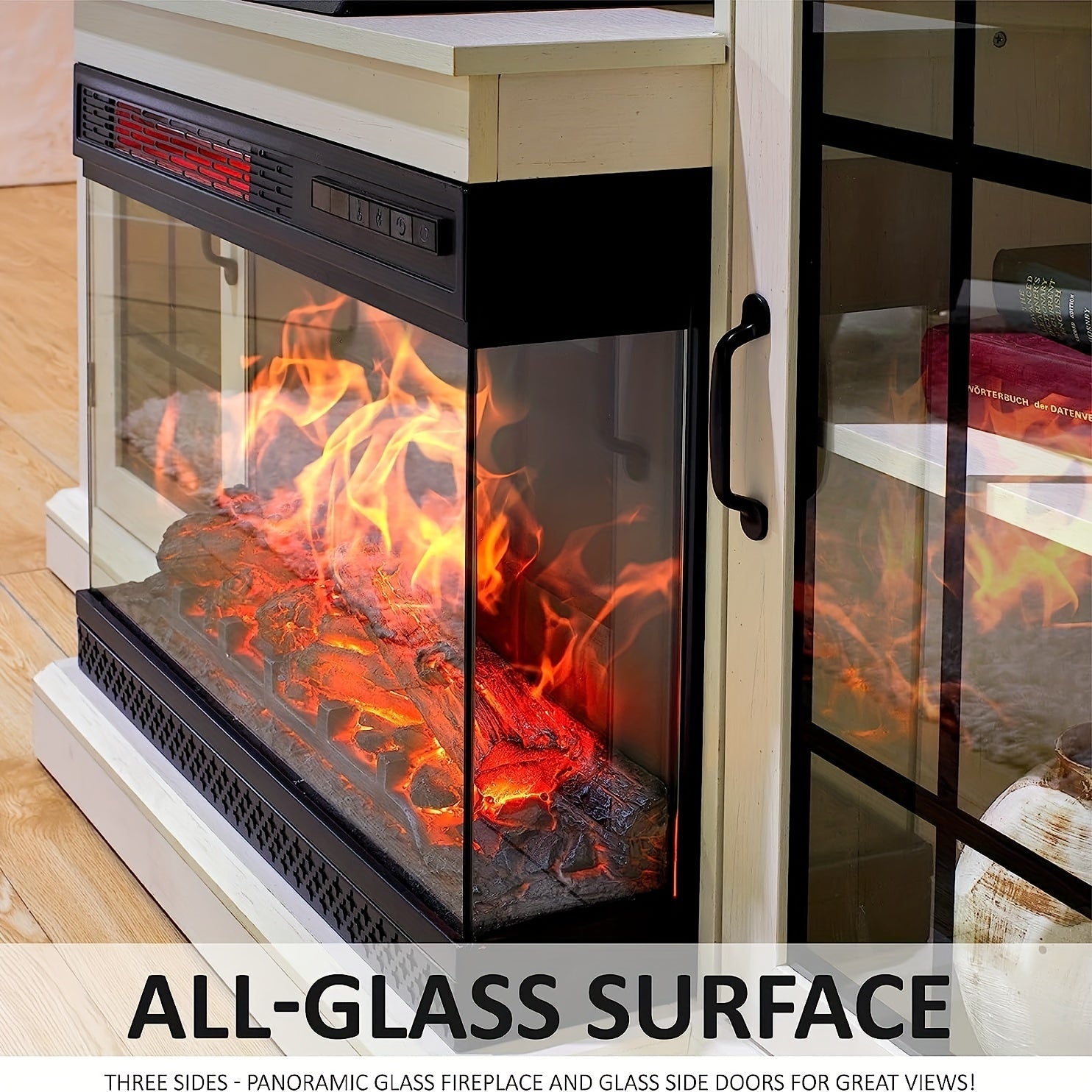 1pc Electric 3-Sided Glass Fireplace TV Stand For TVs Up To 65'', With 12 Color Options, Wood Media Entertainment Center Console Table With Doors And Closed Storage - Home Living Room Furniture