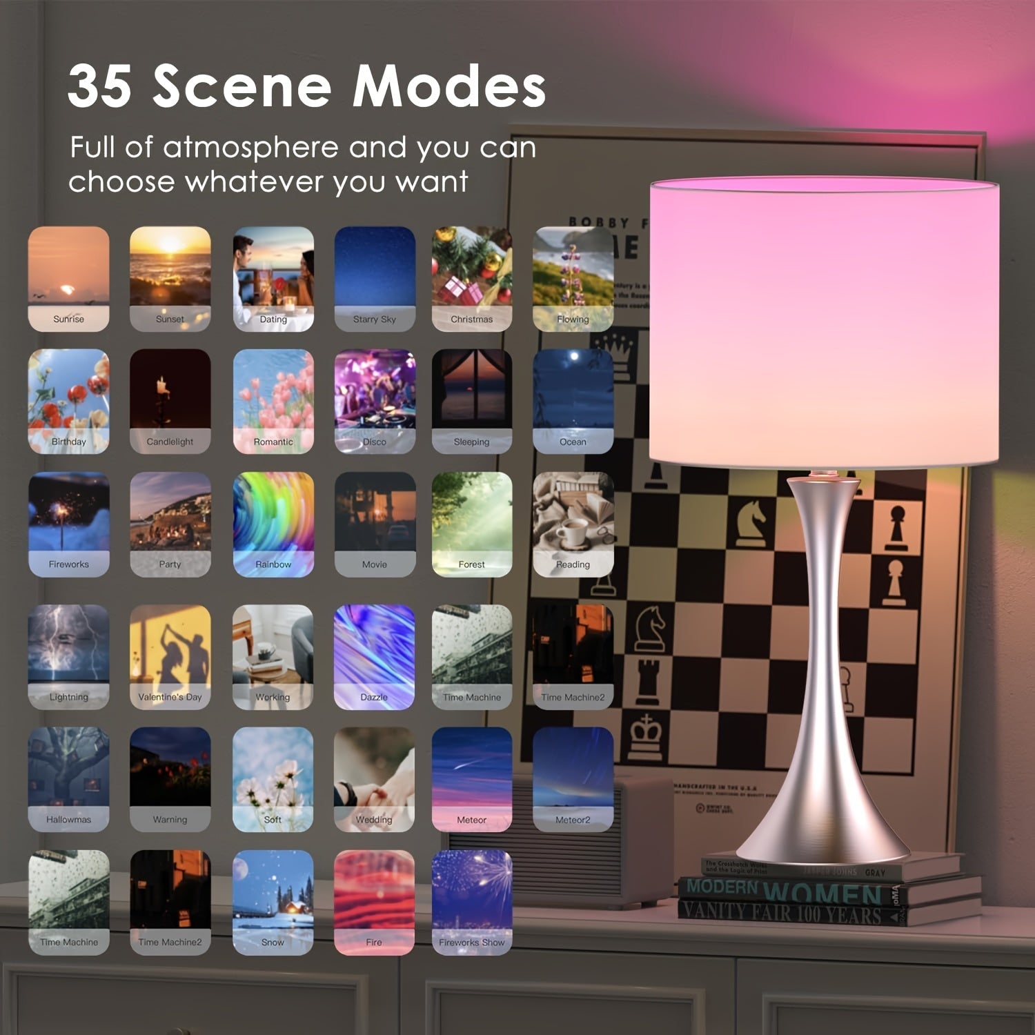 24" Tall Modern Smart Bedside Table Lamps for Bedroom Set of 2, Bedroom Lamp for Nightstand Light Decoration, APP Remote Control & Music Sync Desk Light for Farmhouse Living Room Decor (Brown)