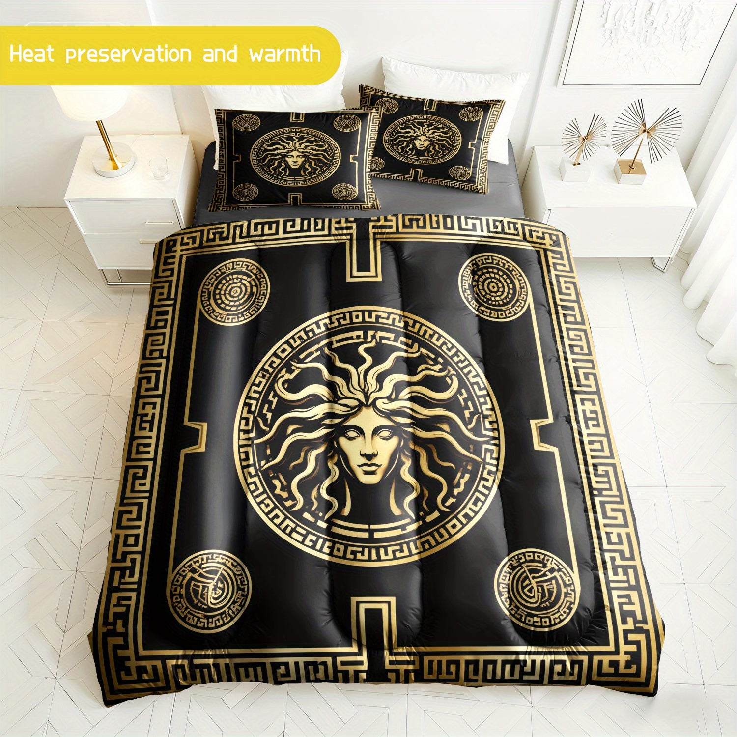 3pcs (1 comforter + 2 pillowcases) Bedding Set, All-Season Soft Microfiber, Hypoallergenic, Wrinkle & Fade Resistant, Easy - Care, Queen/King/Full Size, Fashionable Medusa - Inspired Pattern, Luxury - Quality Durable Fabric f