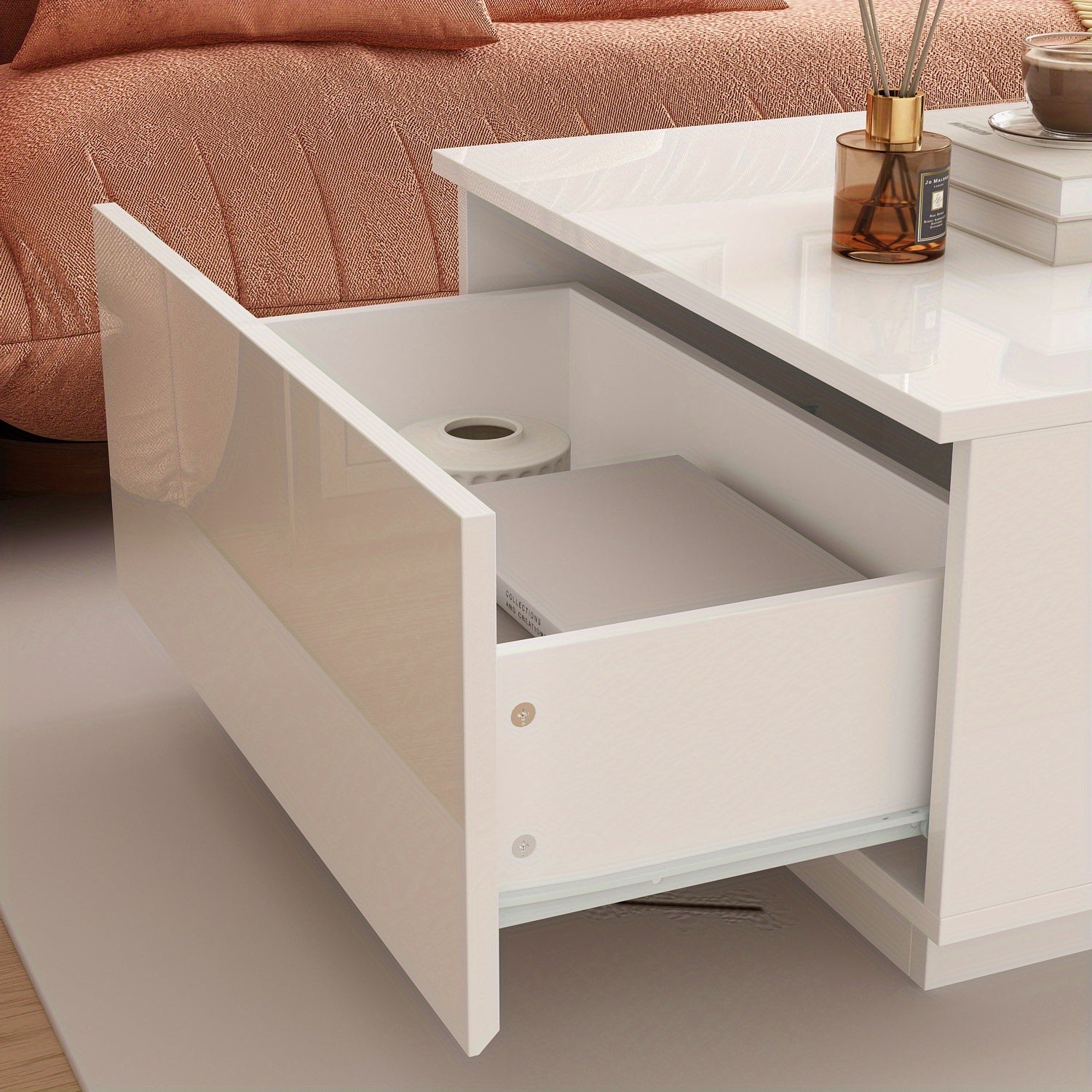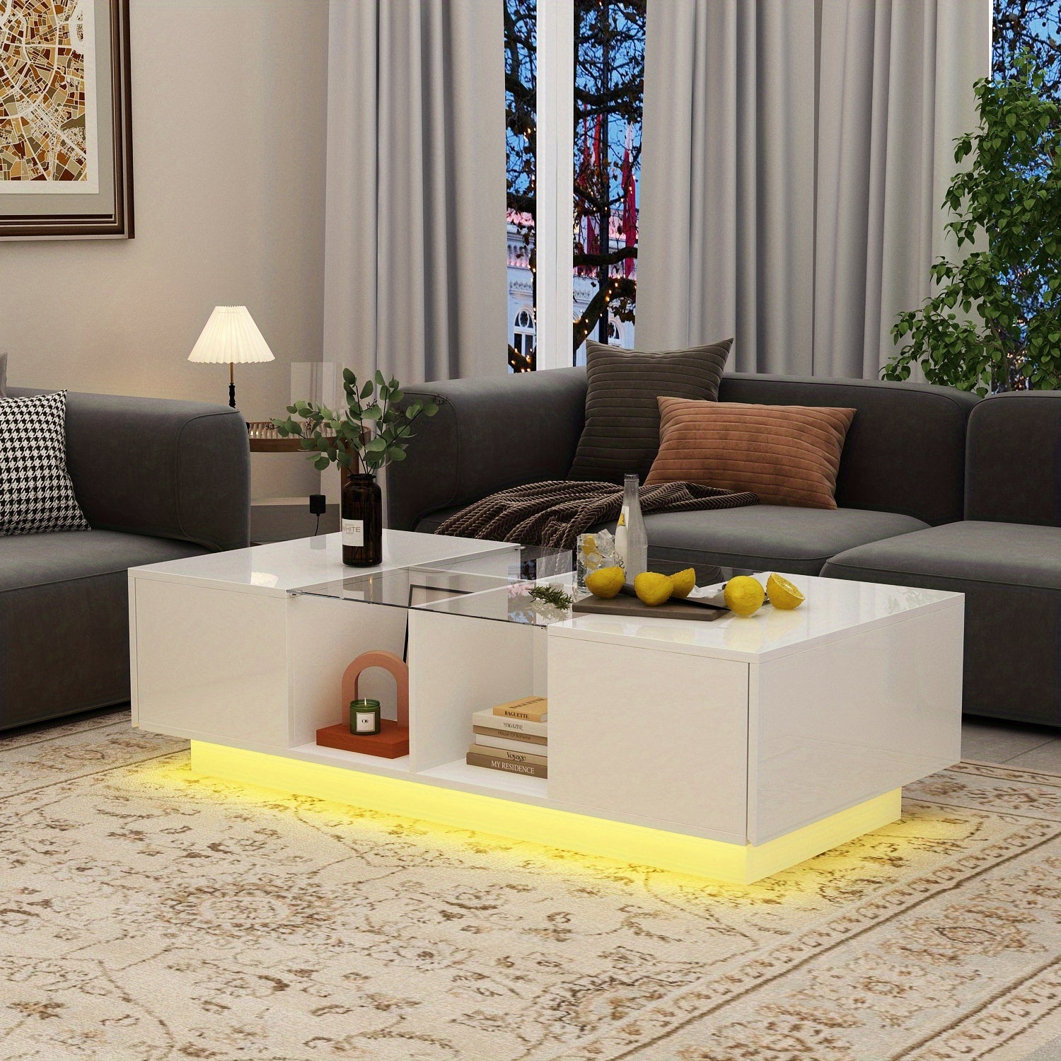 47.4" W Coffee Table with Storage, High Gloss Coffee Table with LED Lighting, Cocktail Table