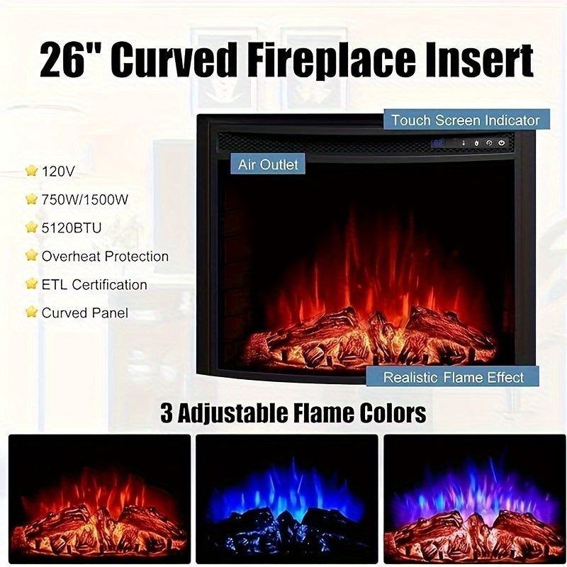 59-Inch Curved Fireplace TV Stand: Farmhouse Style Entertainment Center with 26'' Electric Fireplace, Glass Door Storage Cabinet, and Open Shelves, Fits TVs up to 65"