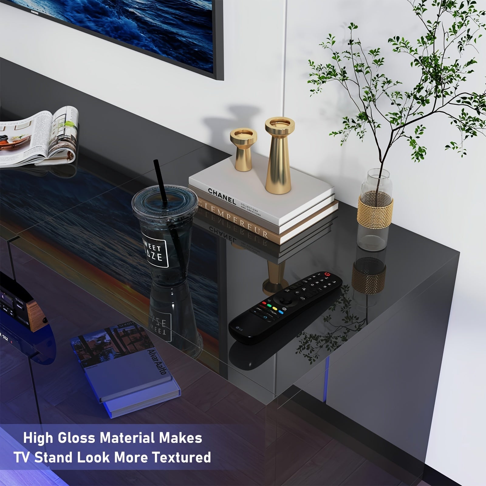 65IN LED TV Stand For 65/70/75inch TV, Modern Black TV Stand For Living Room, High Glossy TV Entertainment Center With Large Storage Drawer, APP RGB Light, TV Console, TV Cabinet (Black)