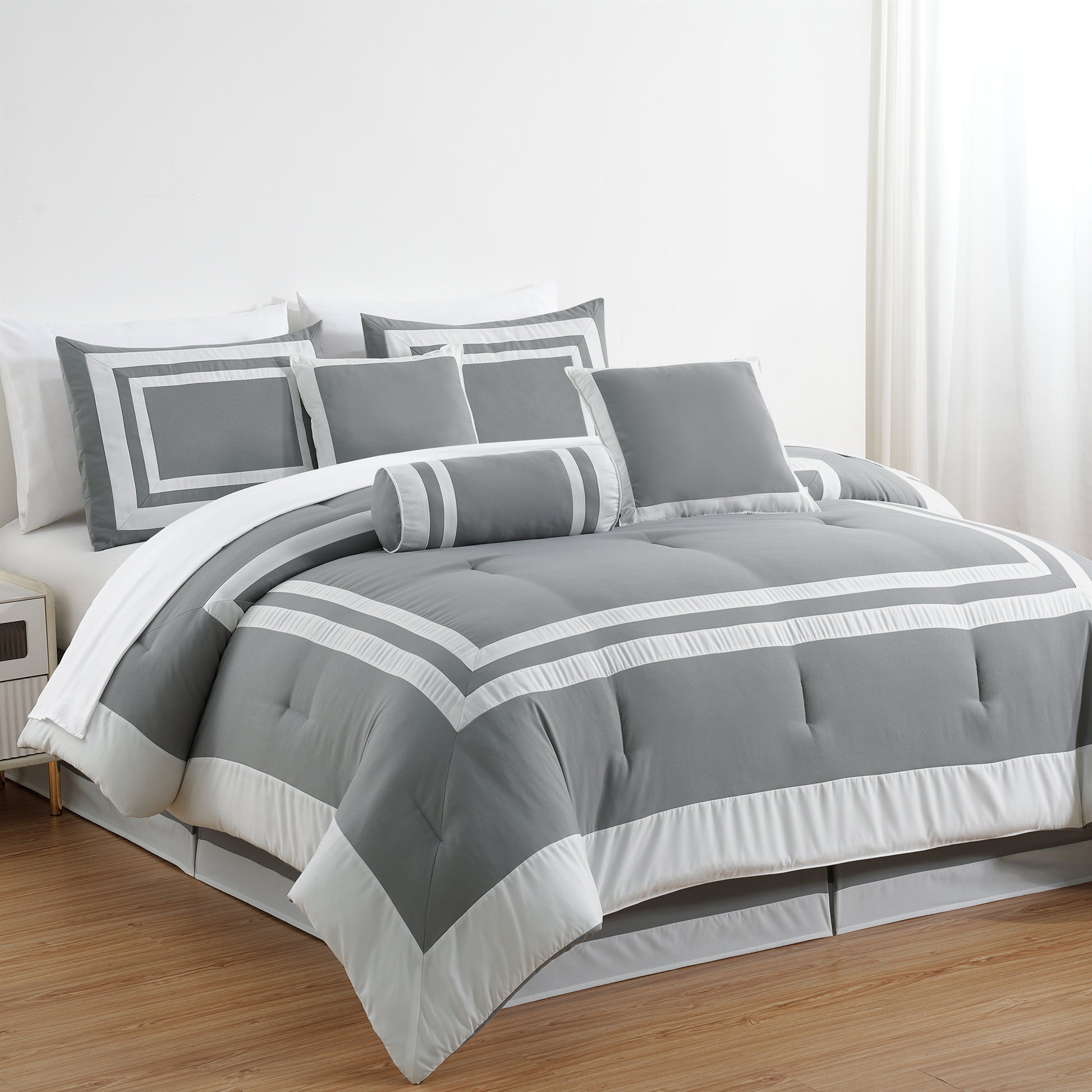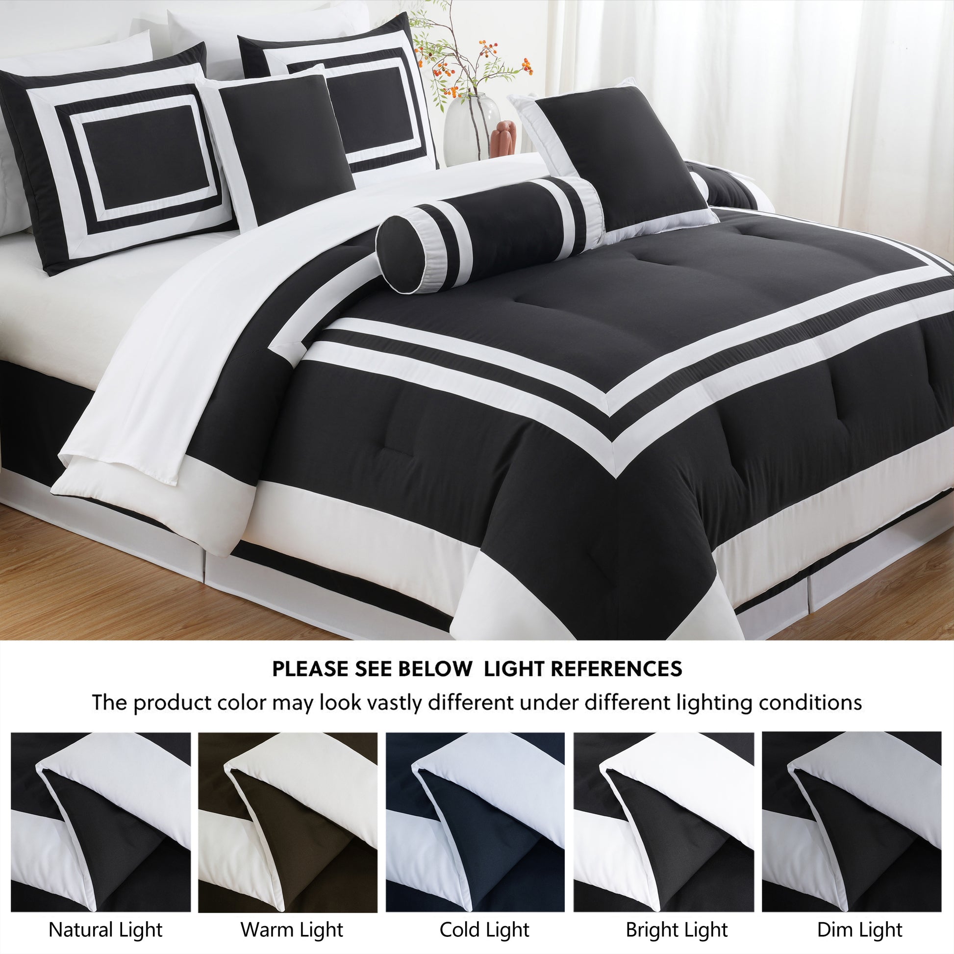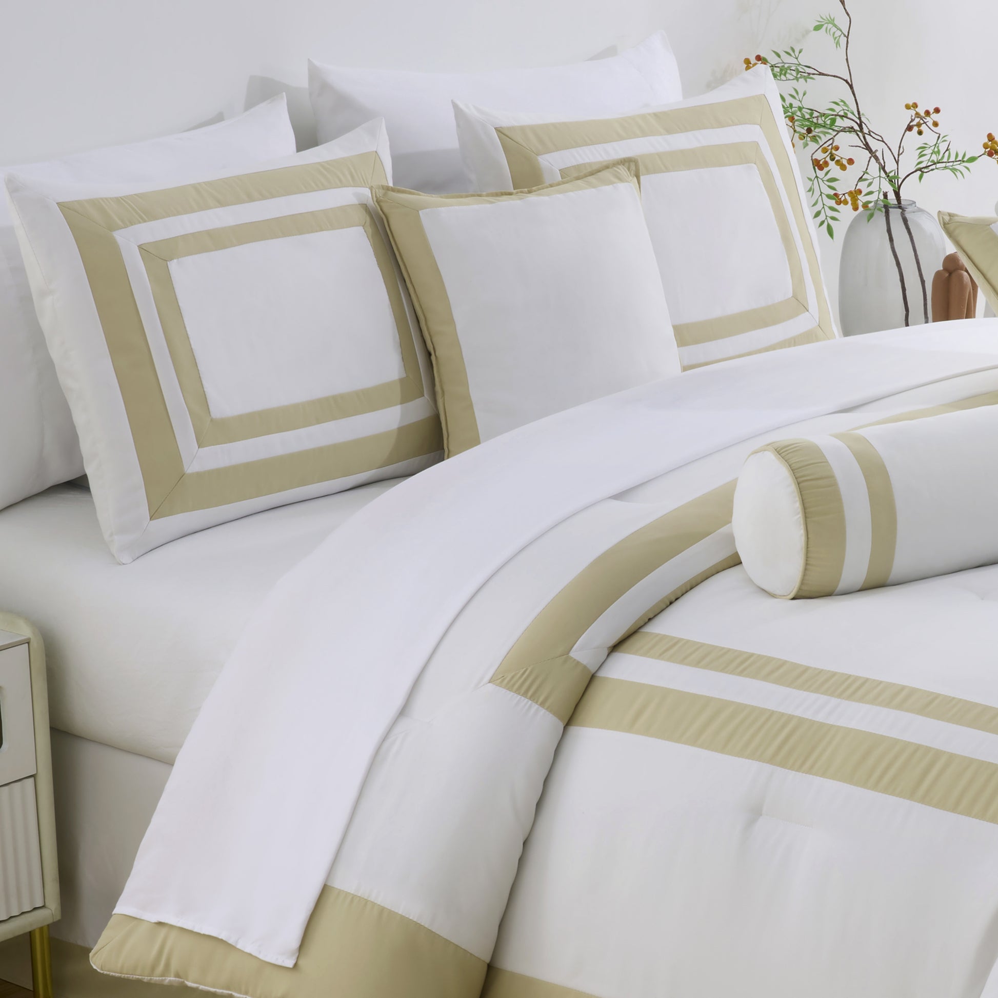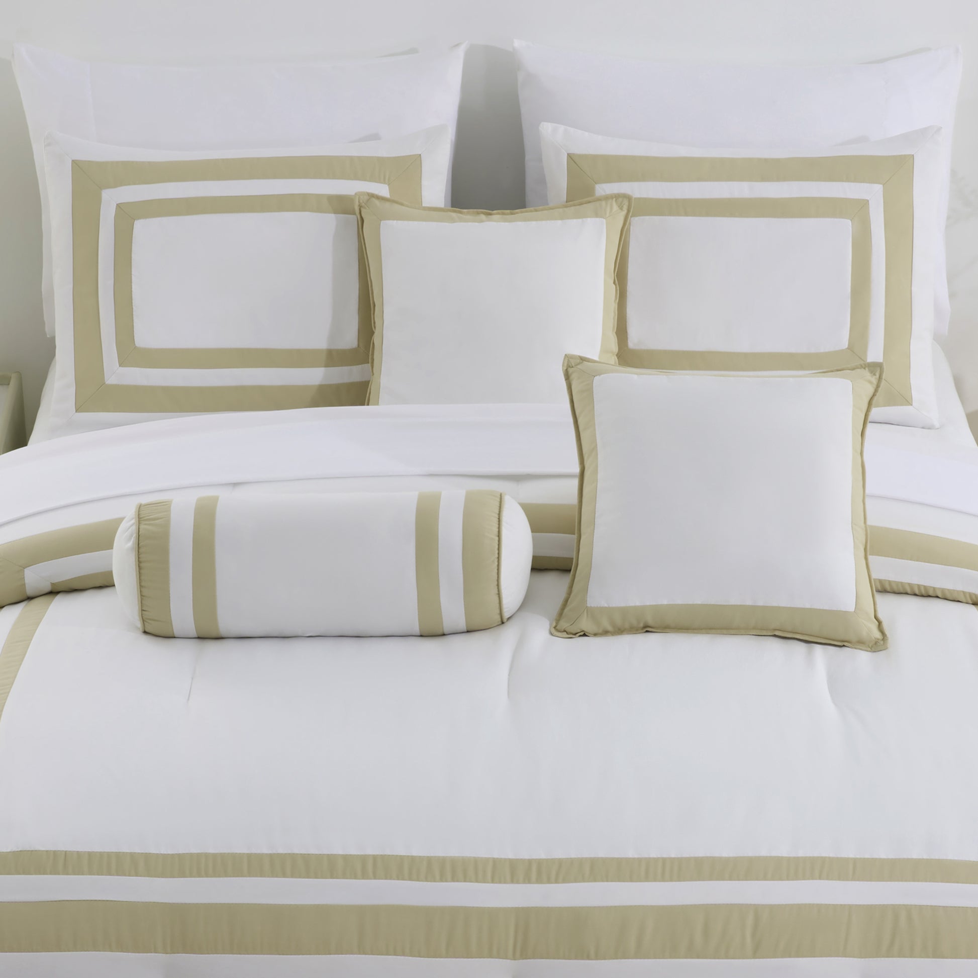 Caprice 7-Piece Modern Hotel Style Square Pattern Comforter Set with Decorative Pillows, Cal King/King/Queen/Full Size