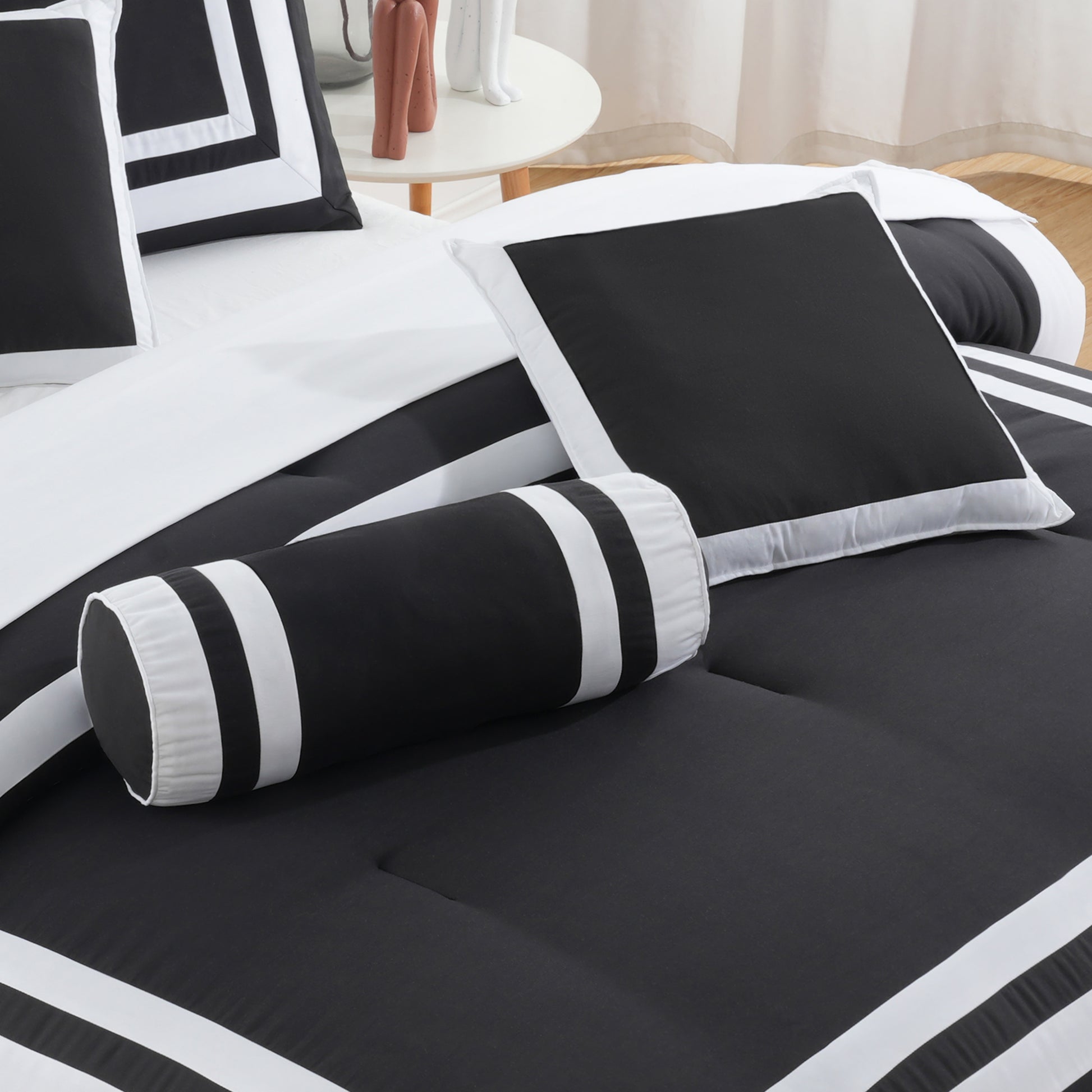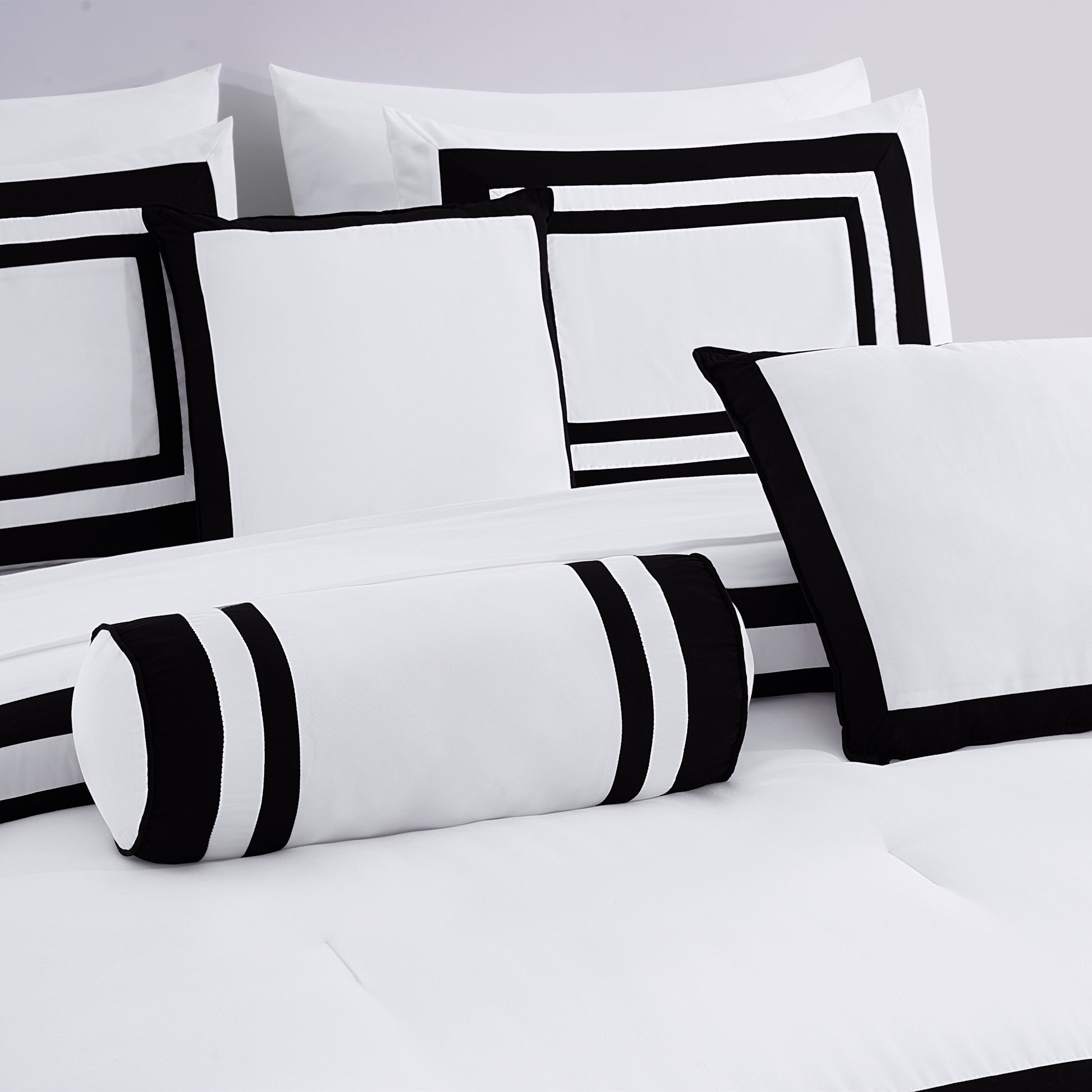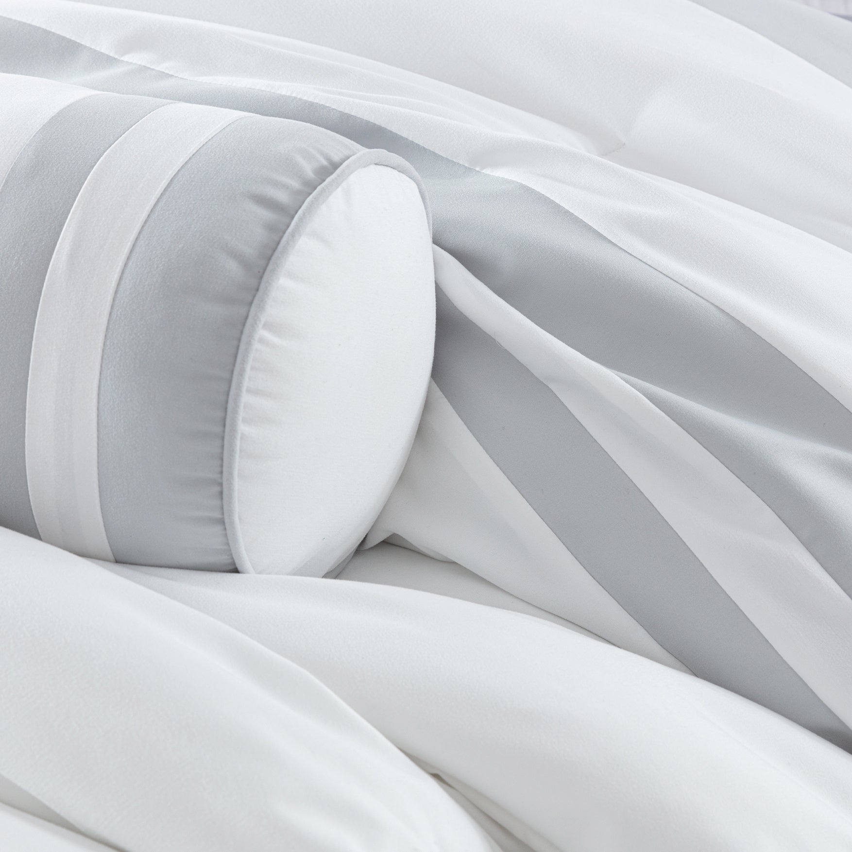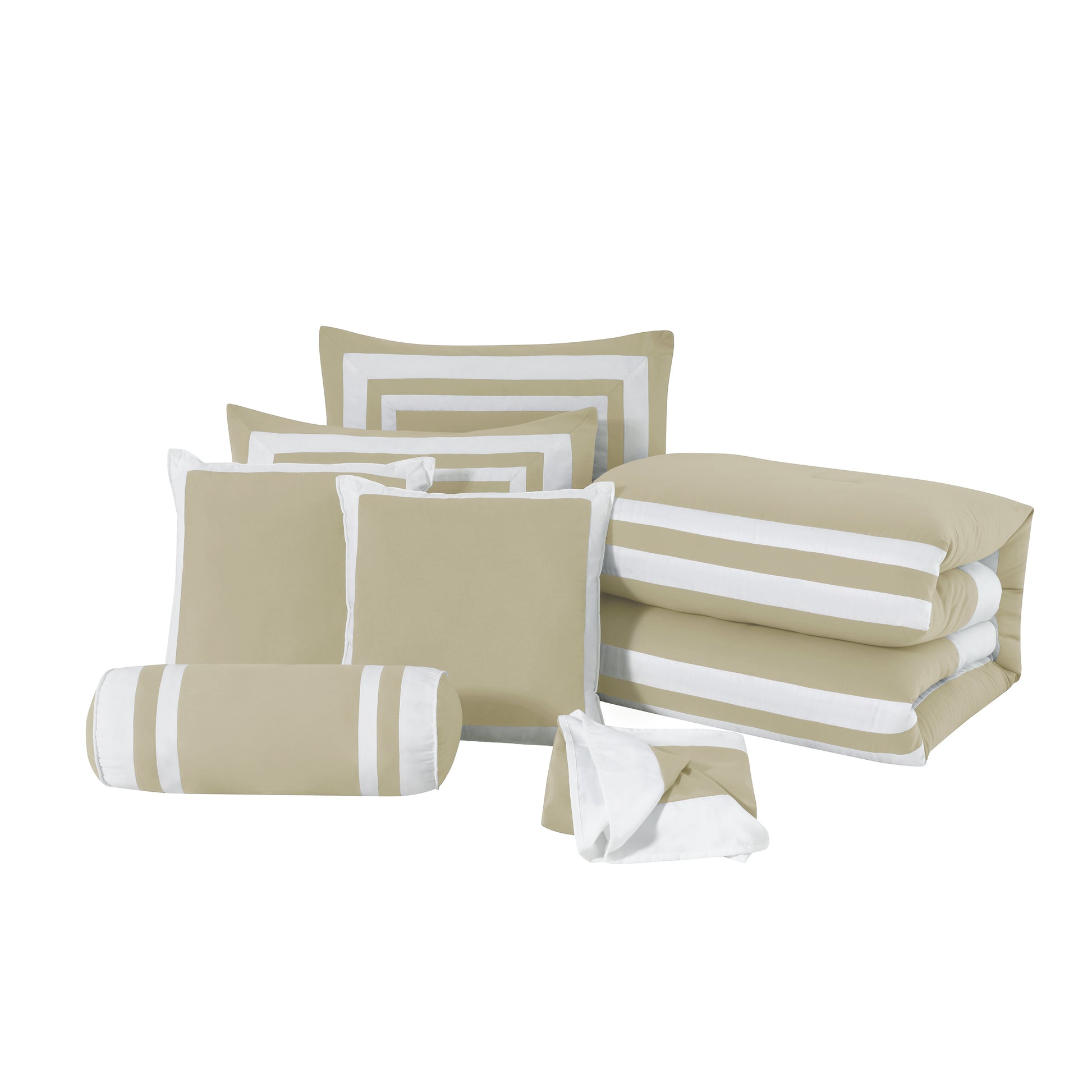 Caprice 7-Piece Modern Hotel Style Square Pattern Comforter Set with Decorative Pillows, Cal King/King/Queen/Full Size