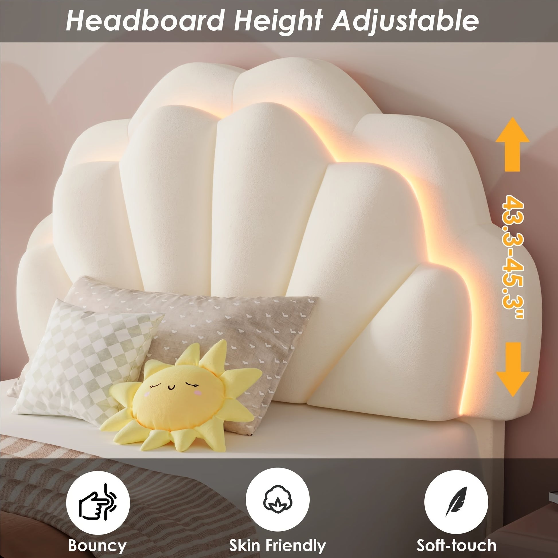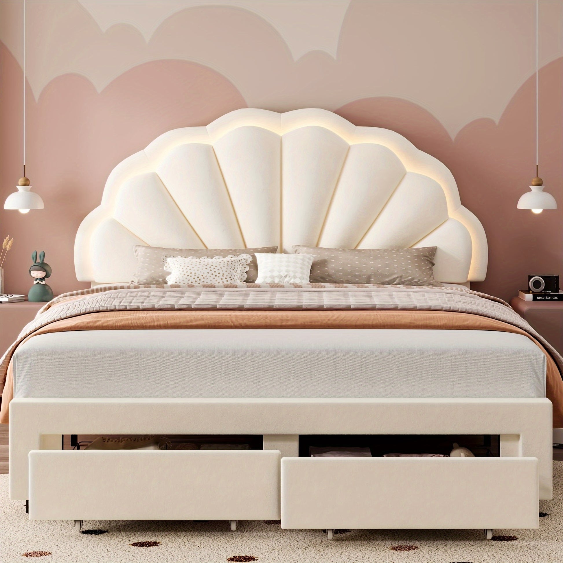 FULTRU LED Bed Frame With Large Storage Drawer, Velvet Upholstered Platform Bed With Adjustable Floral Headboard