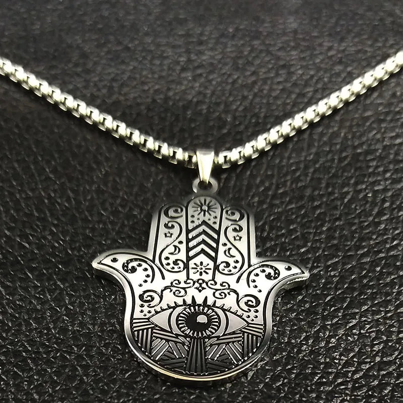 Hamsa Hand of Fatima Stainless Steel Necklaces Men Fatima´s Hand Turkish Eye Necklaces Pendants Jewelry collier homme N933S02