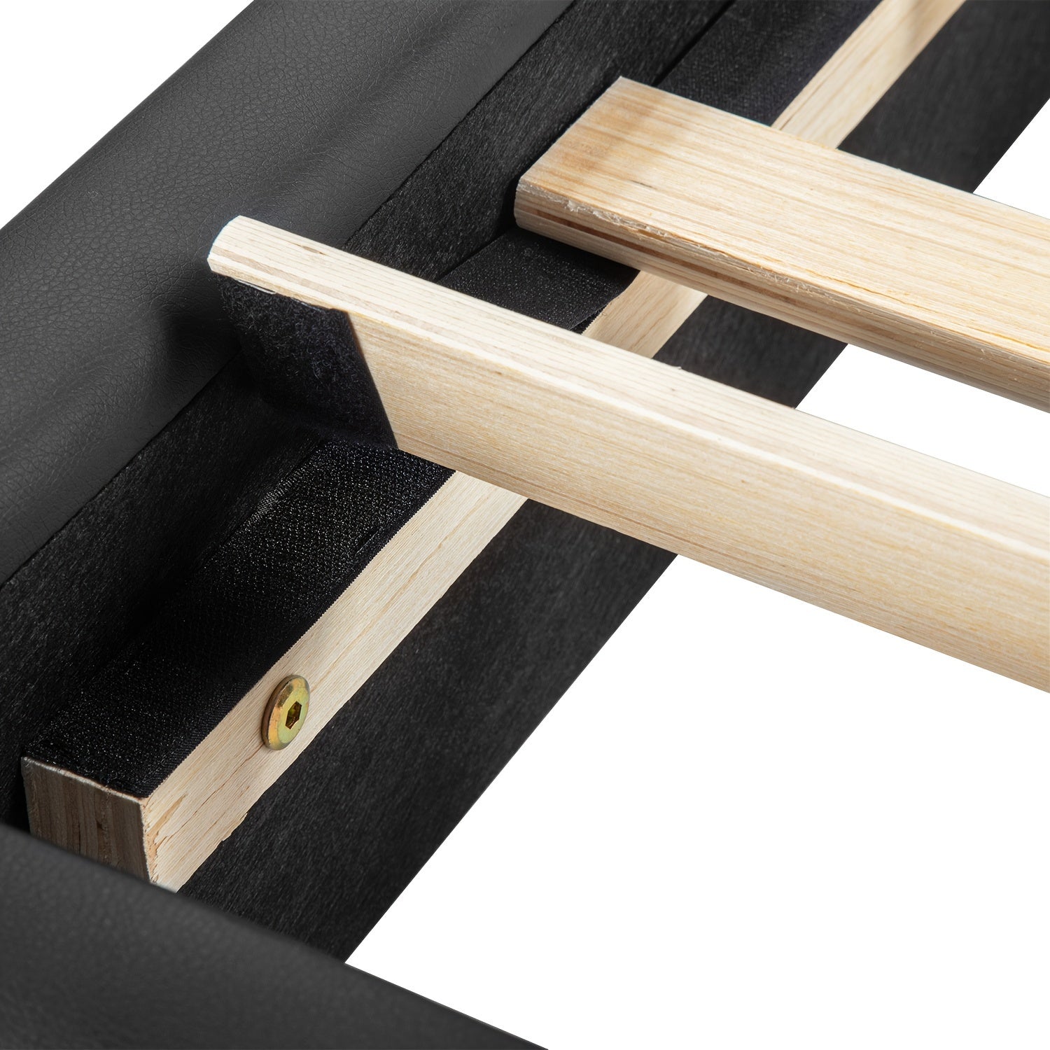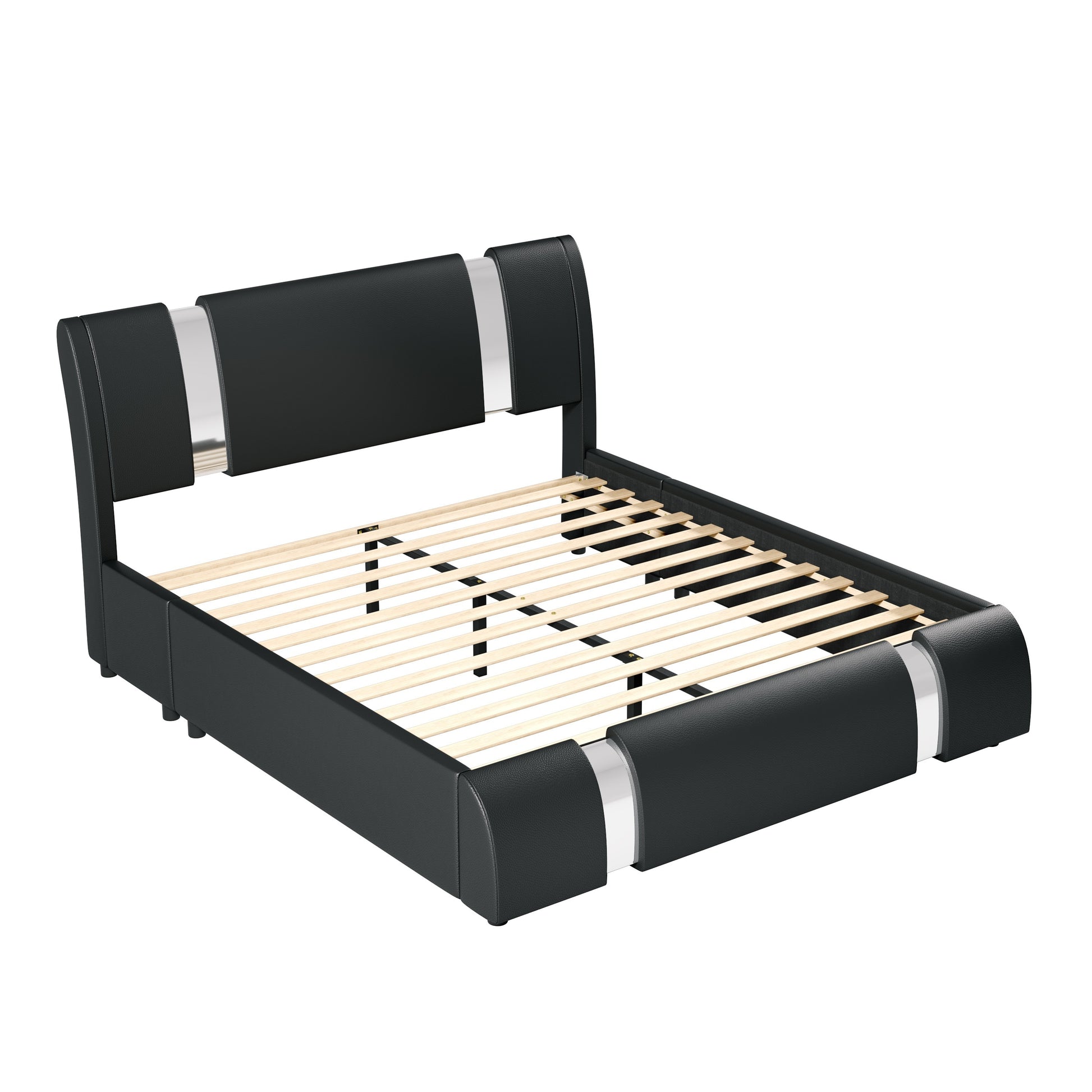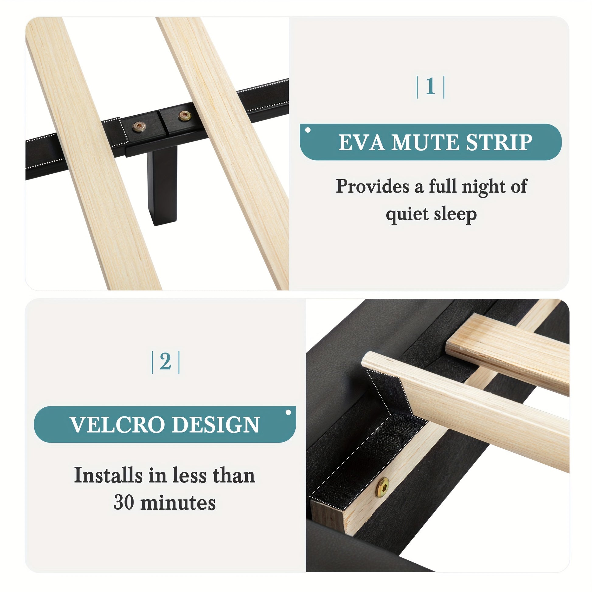 HOOMIC Modern Faux Leather Bed Frame With Iron Pieces Decor, Low Profile Platform Bed With Height-Adjustable Headboard, Solid Wood Slat Support, No Box Spring Needed