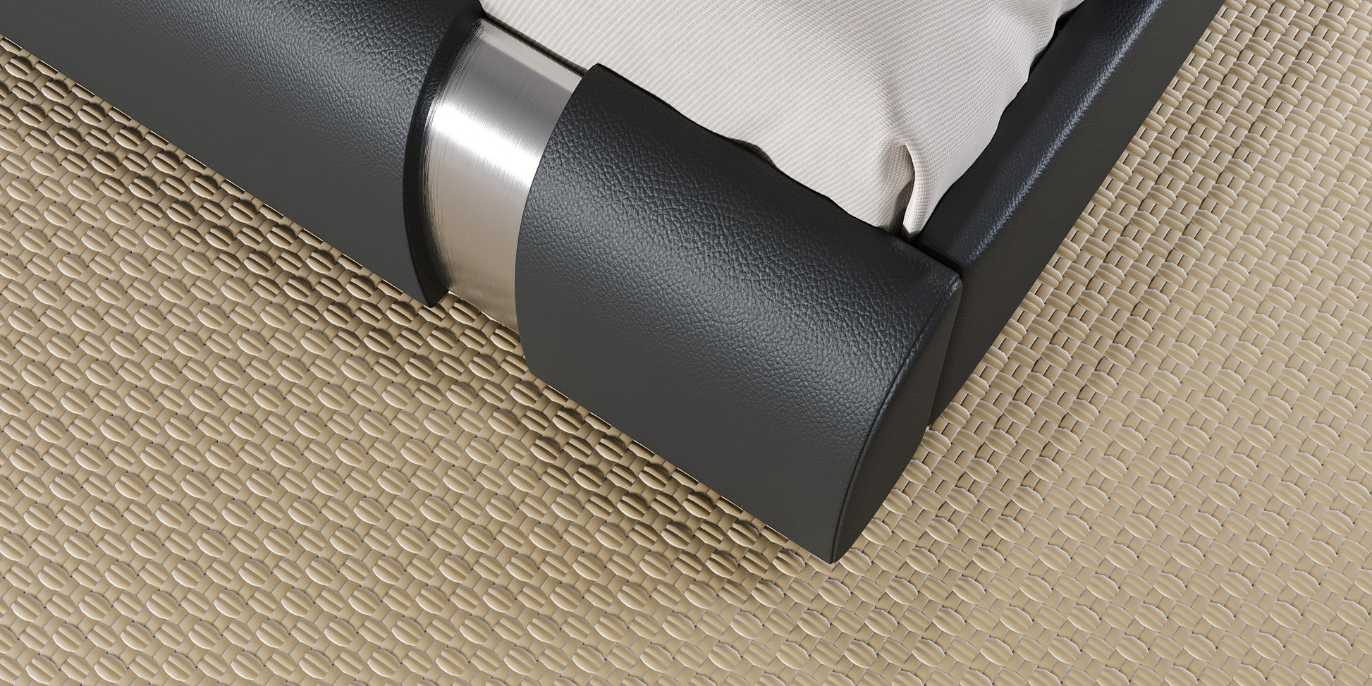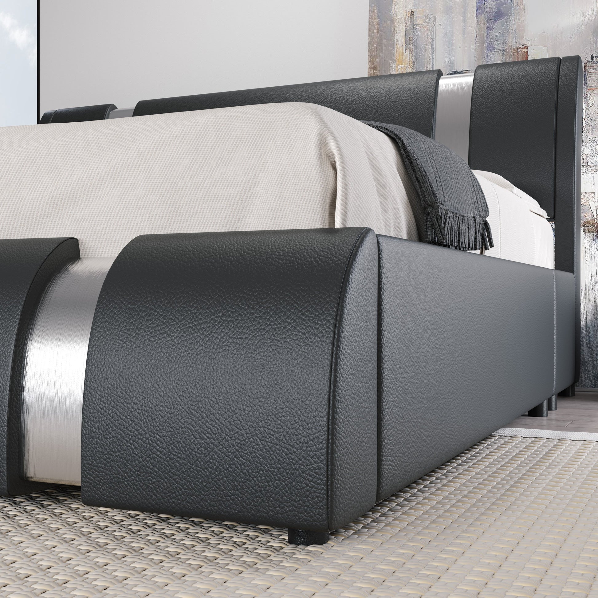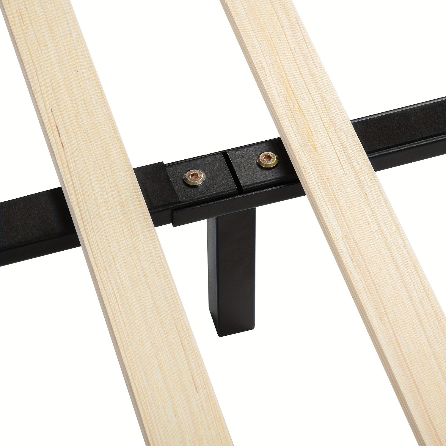 HOOMIC Modern Faux Leather Bed Frame With Iron Pieces Decor, Low Profile Platform Bed With Height-Adjustable Headboard, Solid Wood Slat Support, No Box Spring Needed