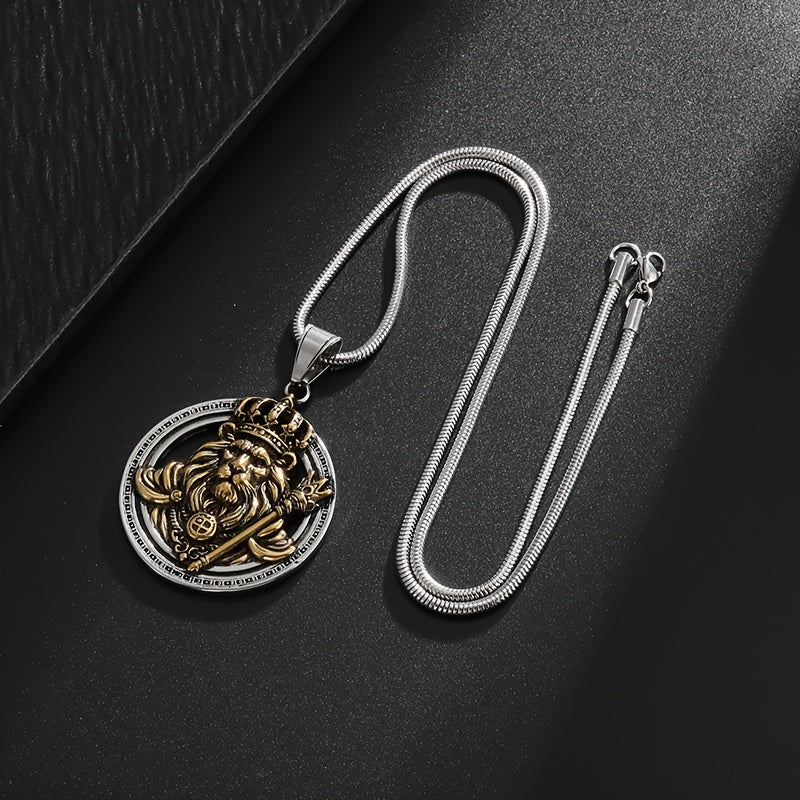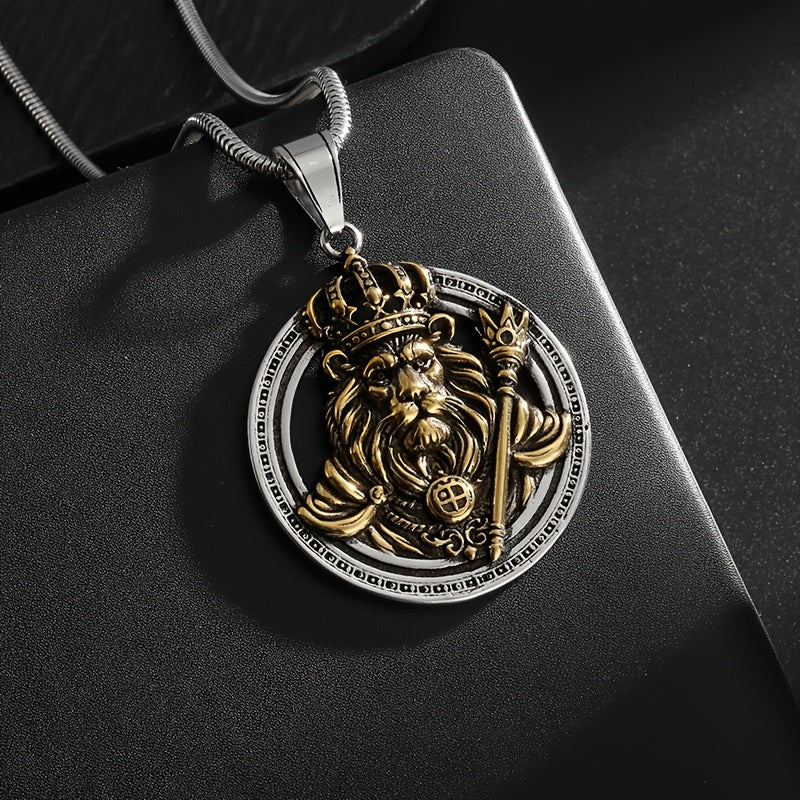 Lion King Throne Pendant - 18K Gold Plated Stainless Steel, Men's Fashion Hip Hop Necklace for Parties & Events