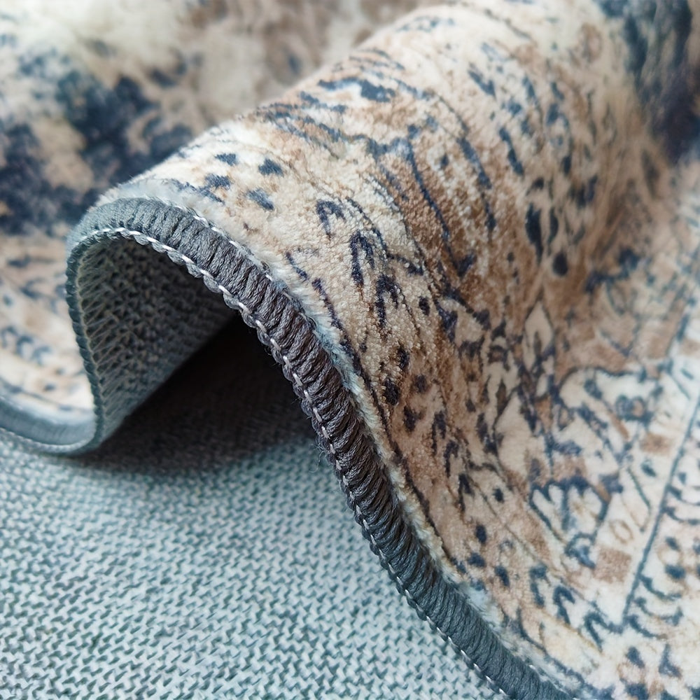 Luxurious Faux Cashmere Black Marble Area Rug - 1pc, Machine Washable & Non-Slip, Perfect for Living Room, Bedroom, Office - Elegant Home Decor