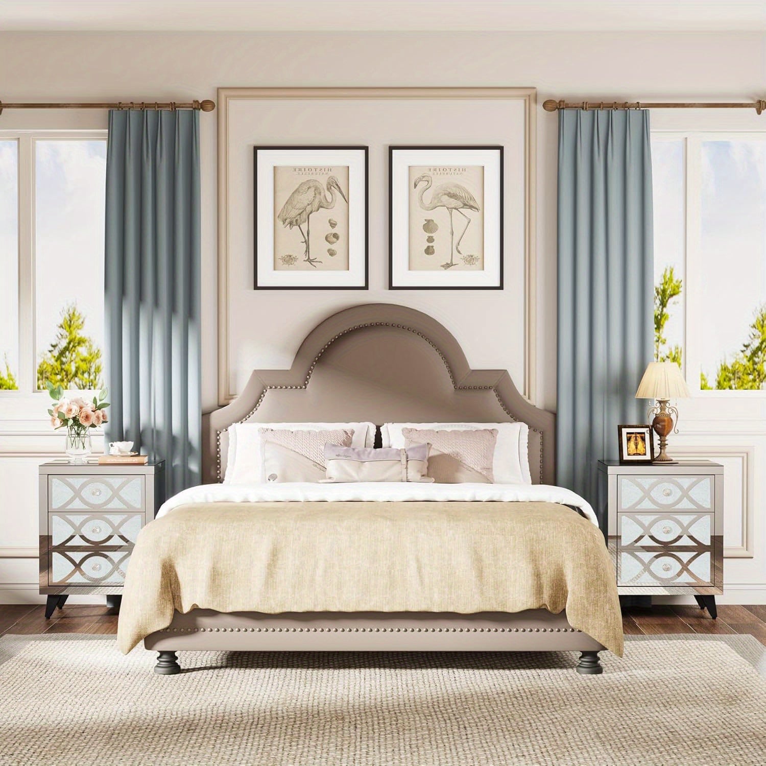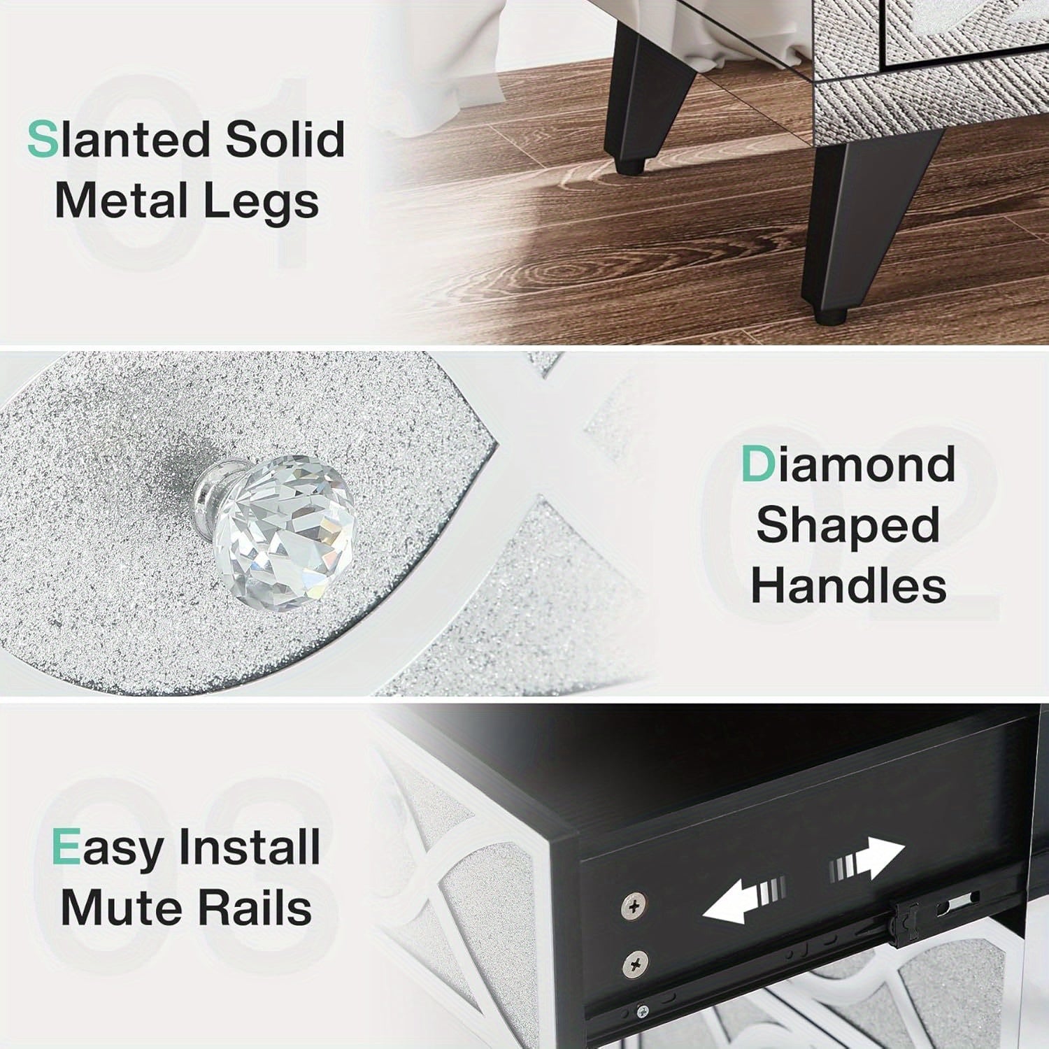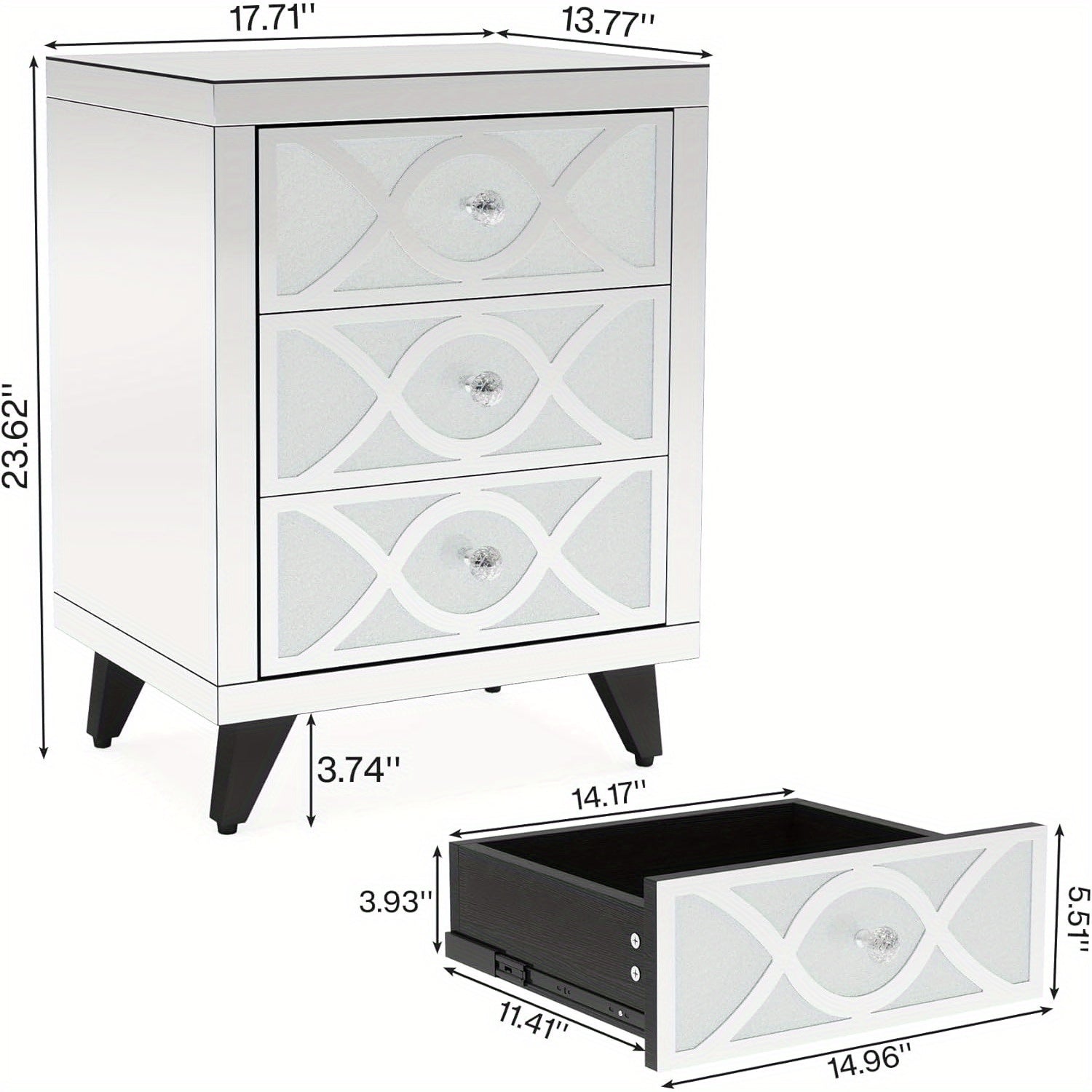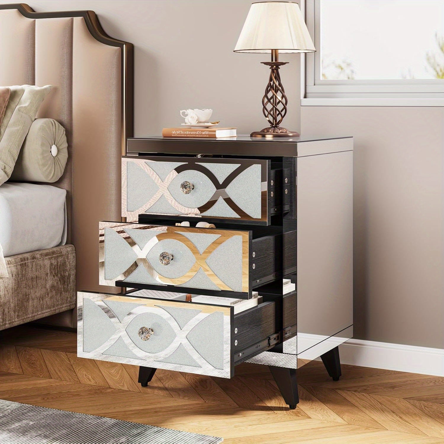 Mirrored cabinet, Modern File case with 3 Drawers, Silver Bed Side Table for Bedroom, Large Night Stand with Storage Drawers, Wooden Side End Table for Home, Office, Easy Assembly