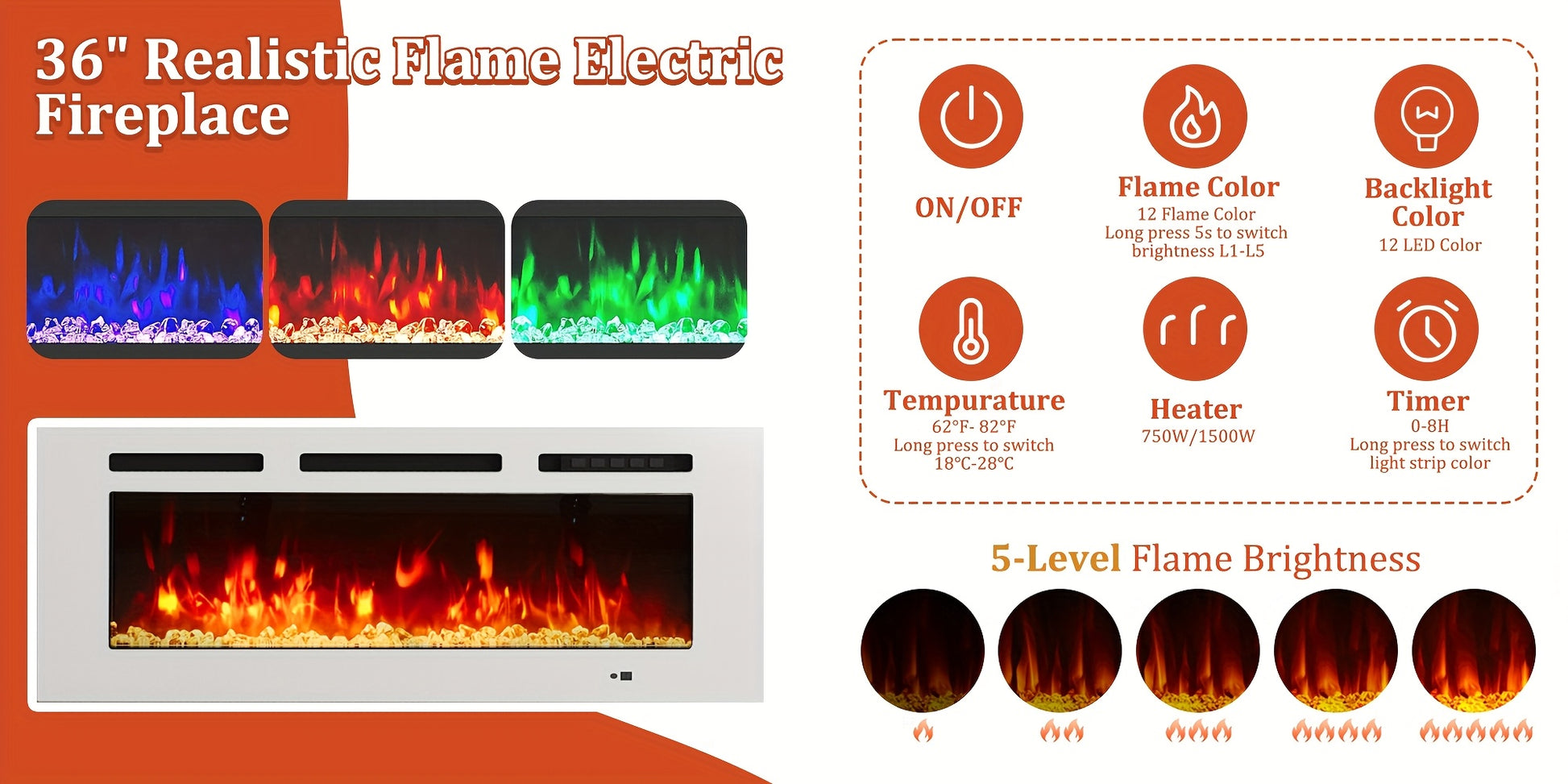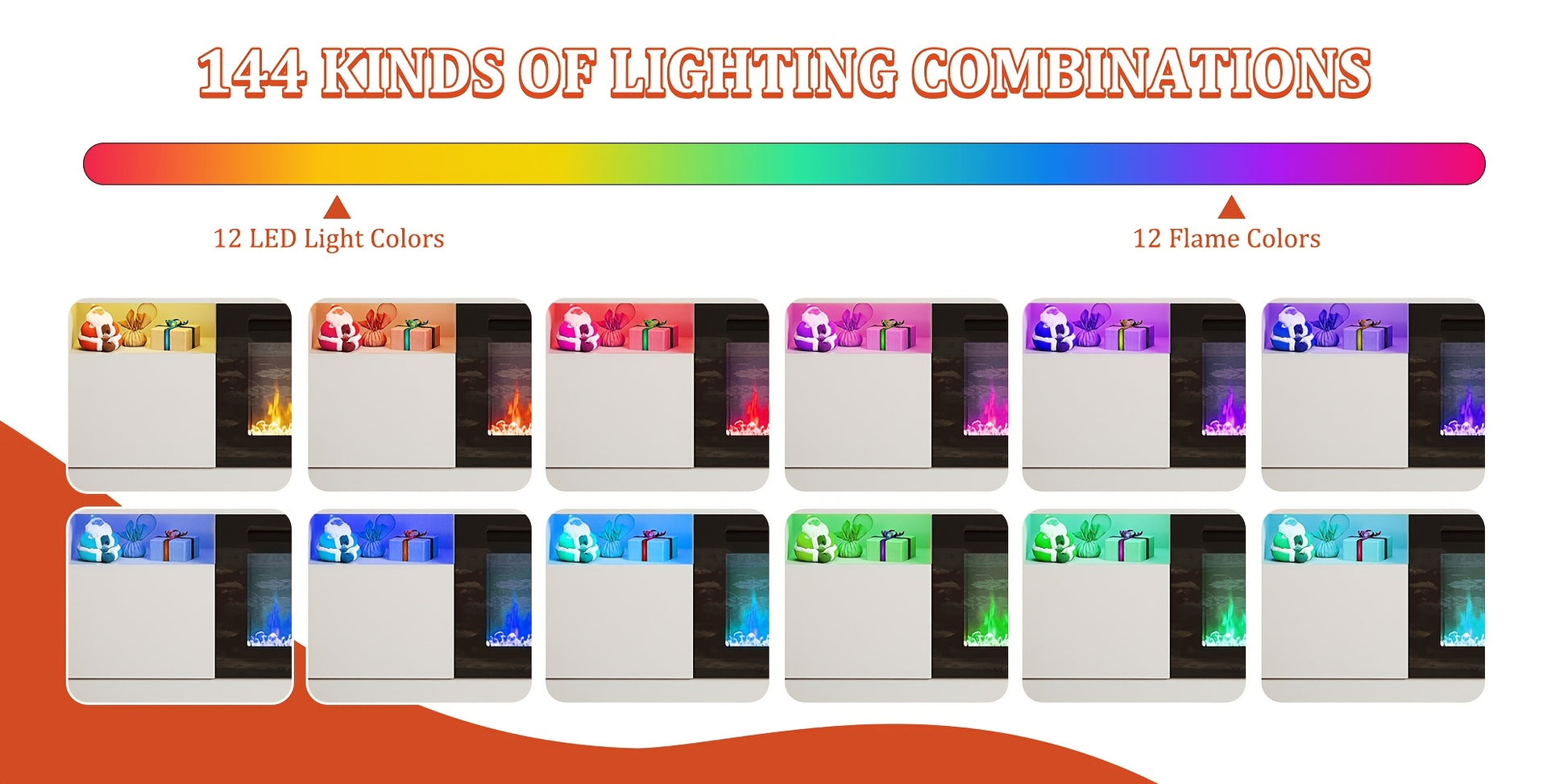 Modern 70" TV Stand with 36" Electric Fireplace, LED Lighting & Storage - Fits Up to 80" TVs, White