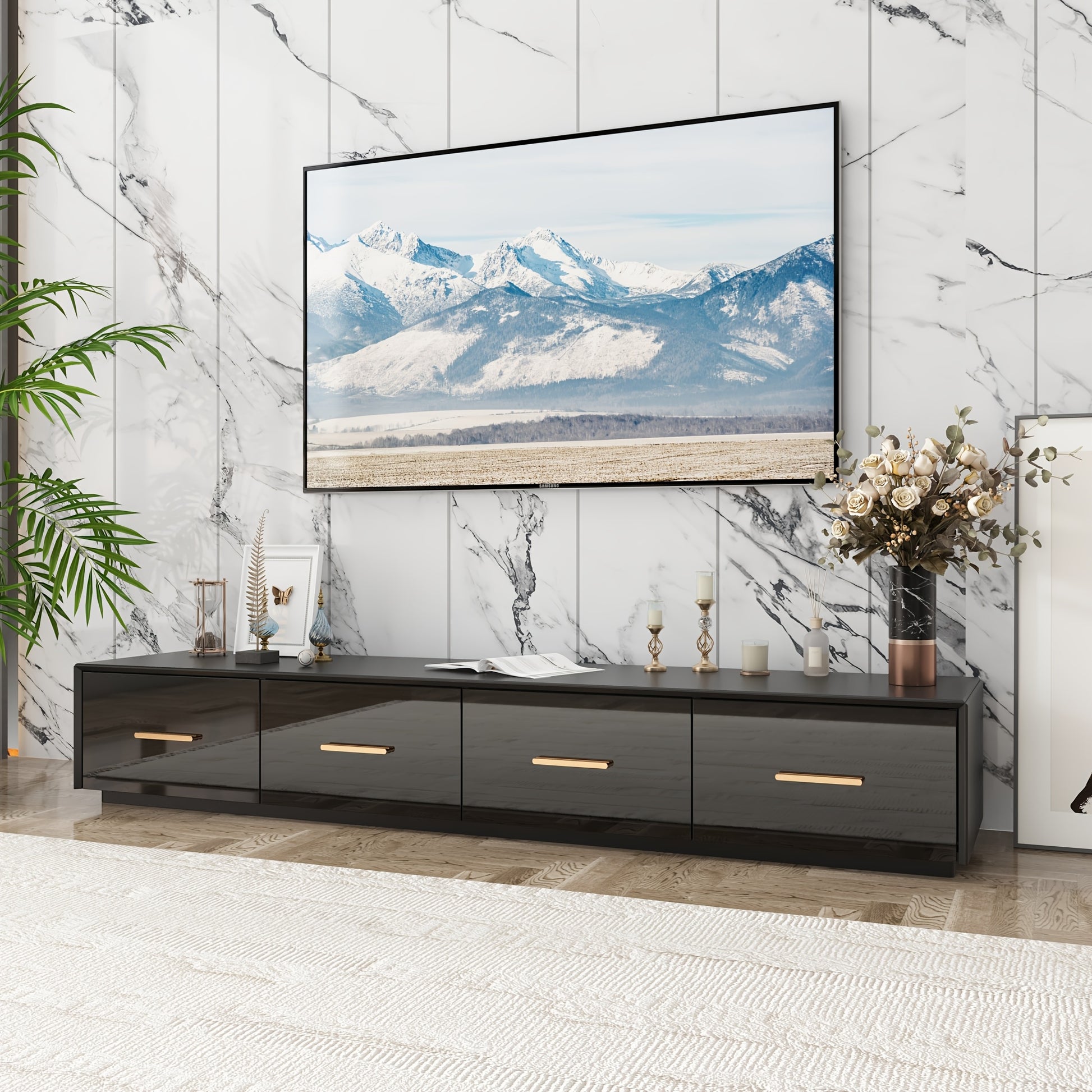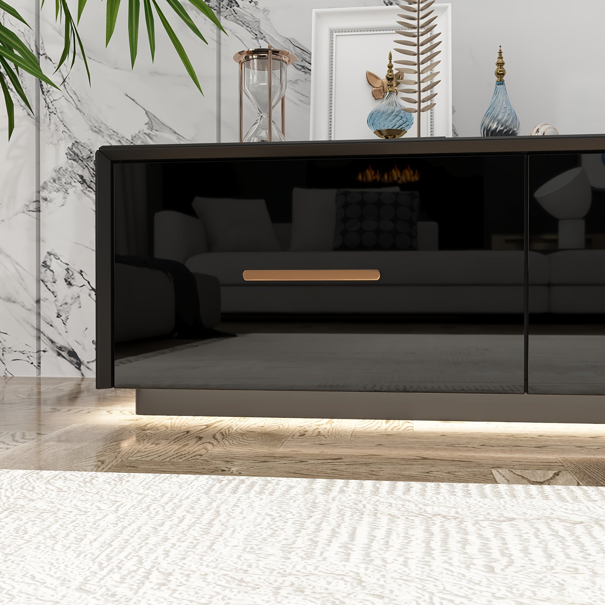 Modern High Gloss TV Stand, Floor Standing TV Cabinet, Gaming And Entertainment Center Console Table, with 4 Drawers And LED Lights, Stylish Design, Black