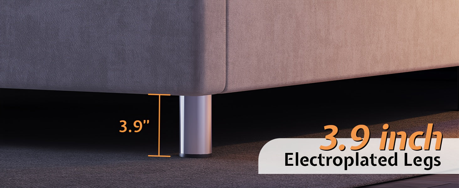 PaPaJet Bed Frame with LED Lights And Charging Station, Velvet Upholstered Platform Bed with 53" Tall Storage Headboard And Wingbacks, No Box Spring Needed