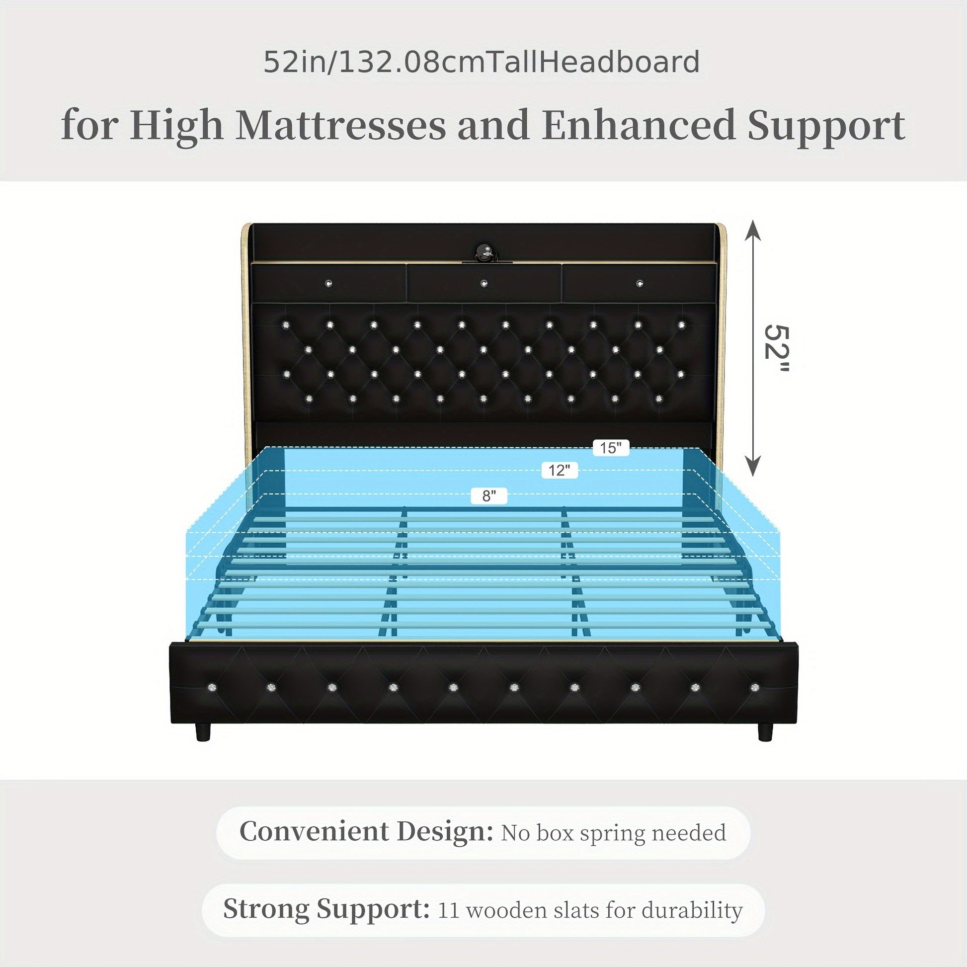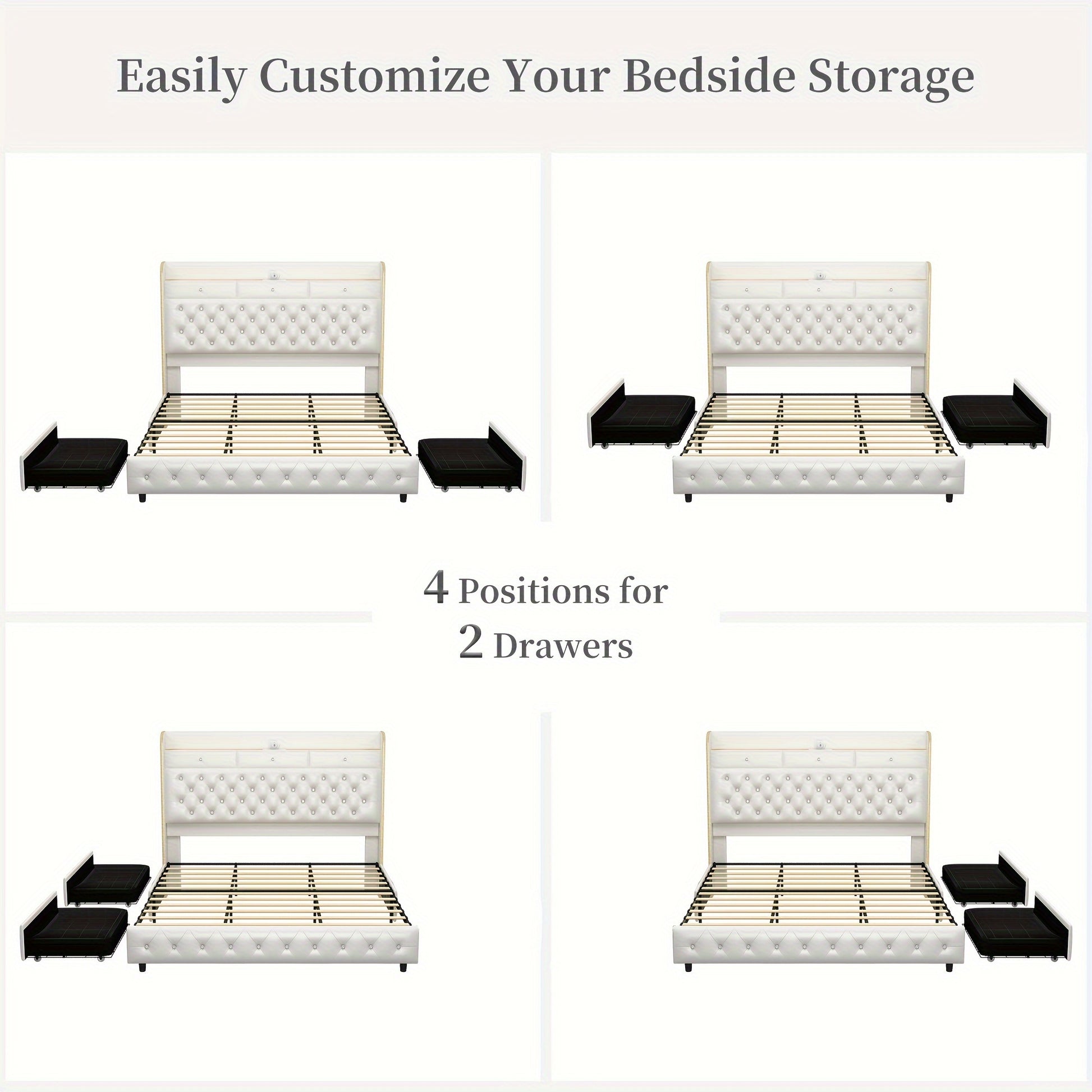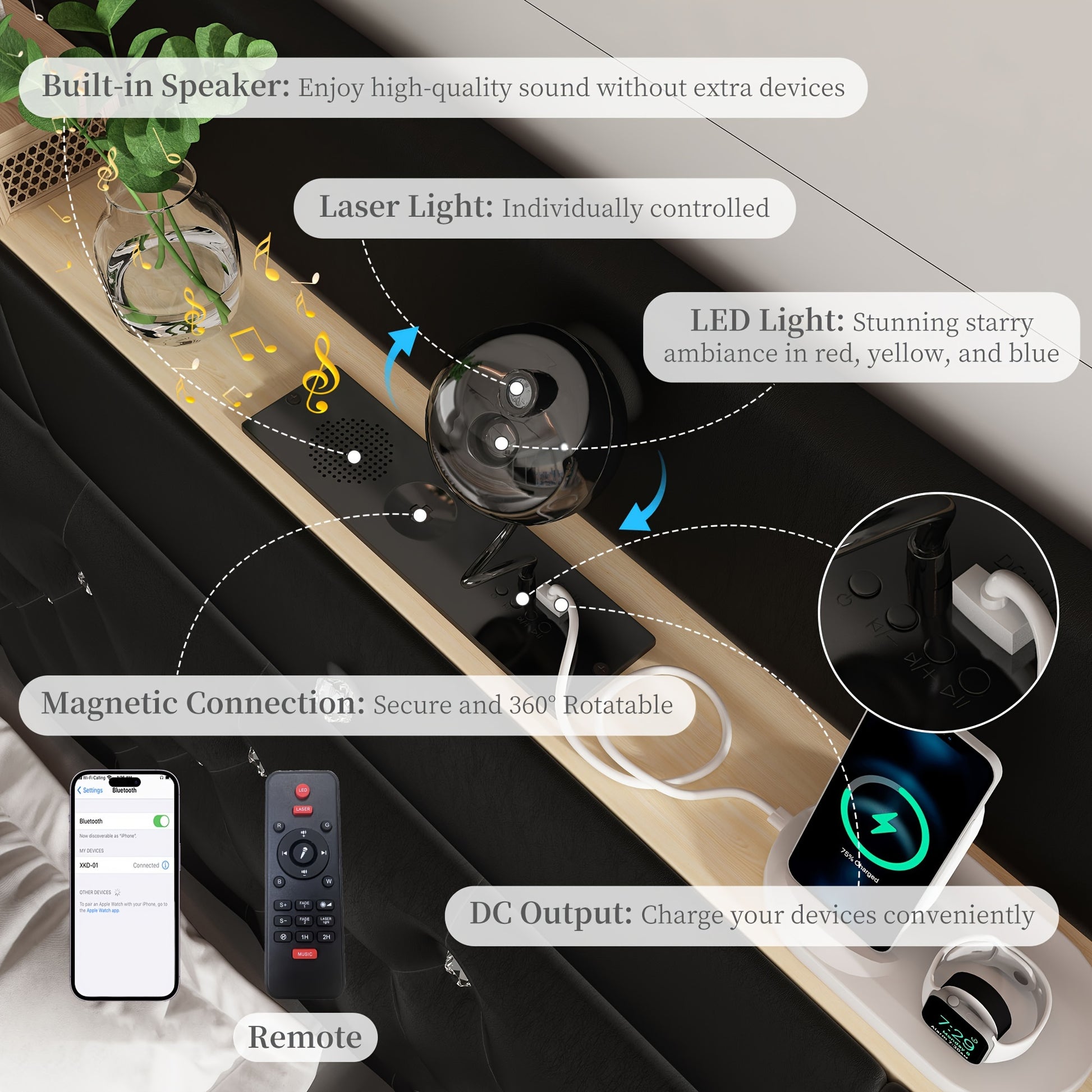 SIBEDS Luxury Queen Bed Frame with Galaxy Aurora Star Projector, USB Charging Station & 2 Storage Drawers - Full Size Platform with Crystal Button Tufted Headboard, Noise-Free Faux Leather, Hardwood Construction