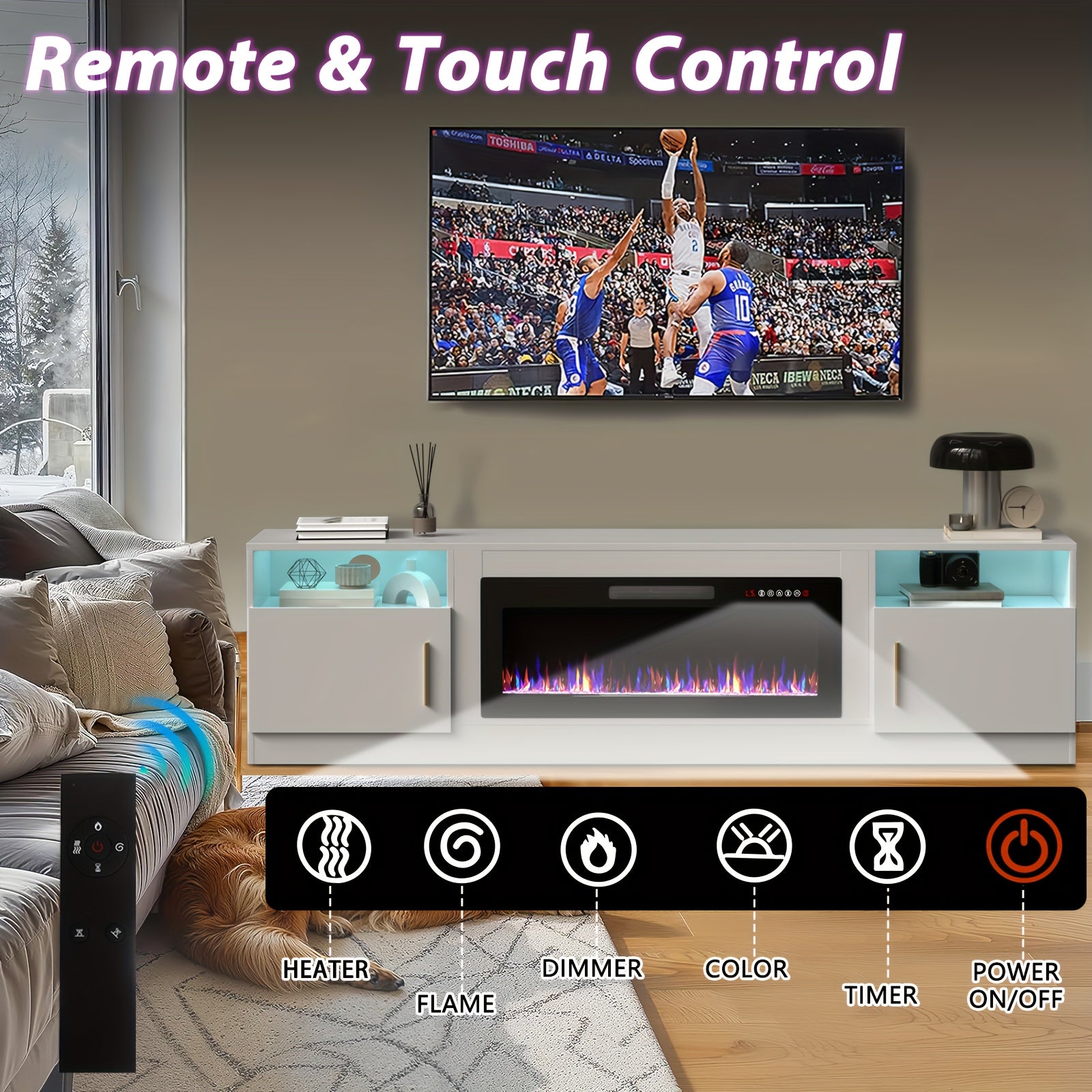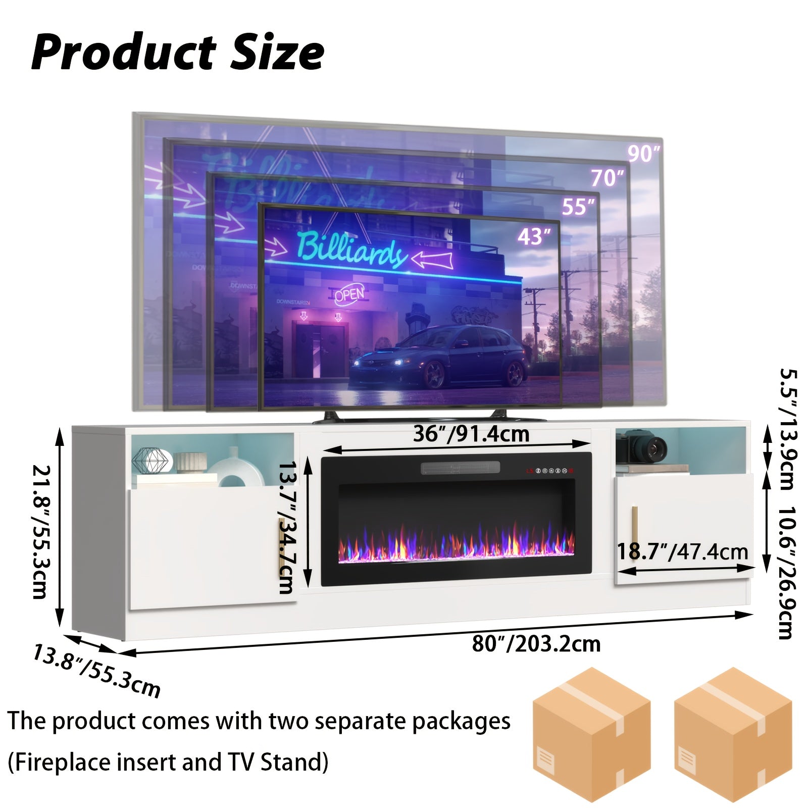 TAVATA Fireplace TV Stand with 36" Fireplace, 80" TV Stand with LED Light for TVs Up to 85", Entertainment Center Console Table with Highlight Storage Cabinets