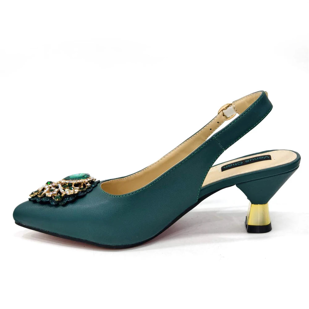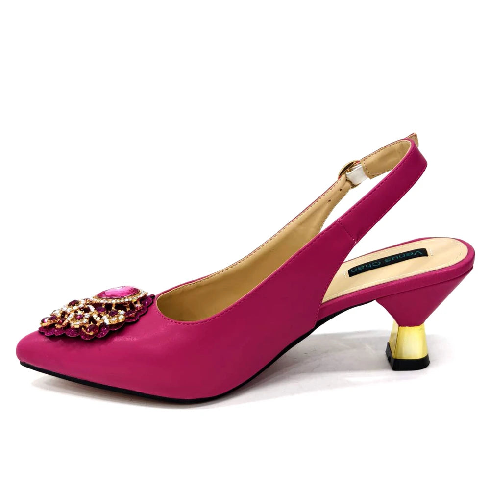 Venus Chan Latest Wedding Pointed Toe Women's Shoes High Heel White Color Rhinestones Party Ladies Shoes And Bag Set