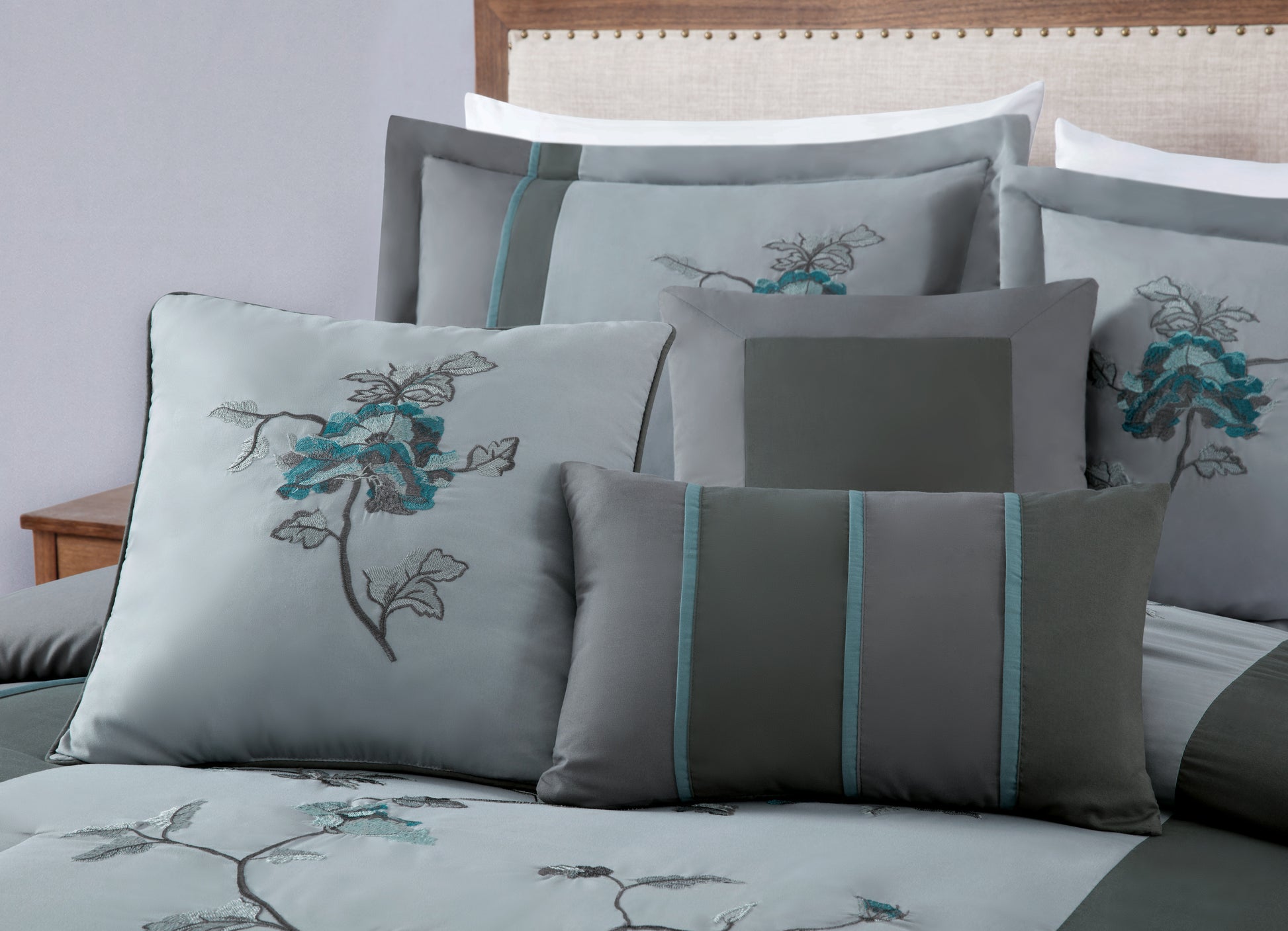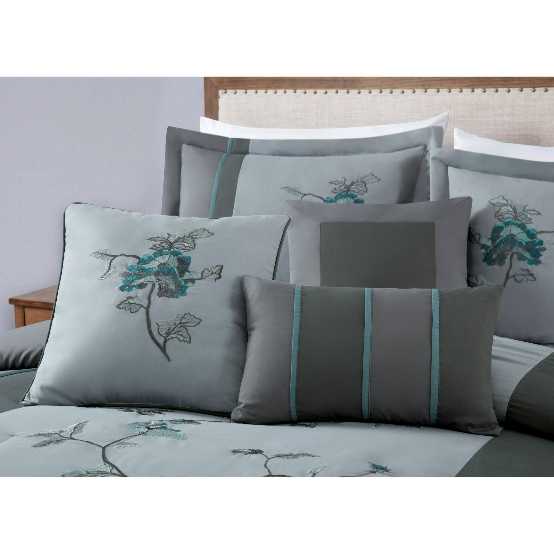 Vienna 7-Piece Embroidered Floral Comforter Set, California King/King/Queen/Full Sizes - Christmas Gift for Family and Friends