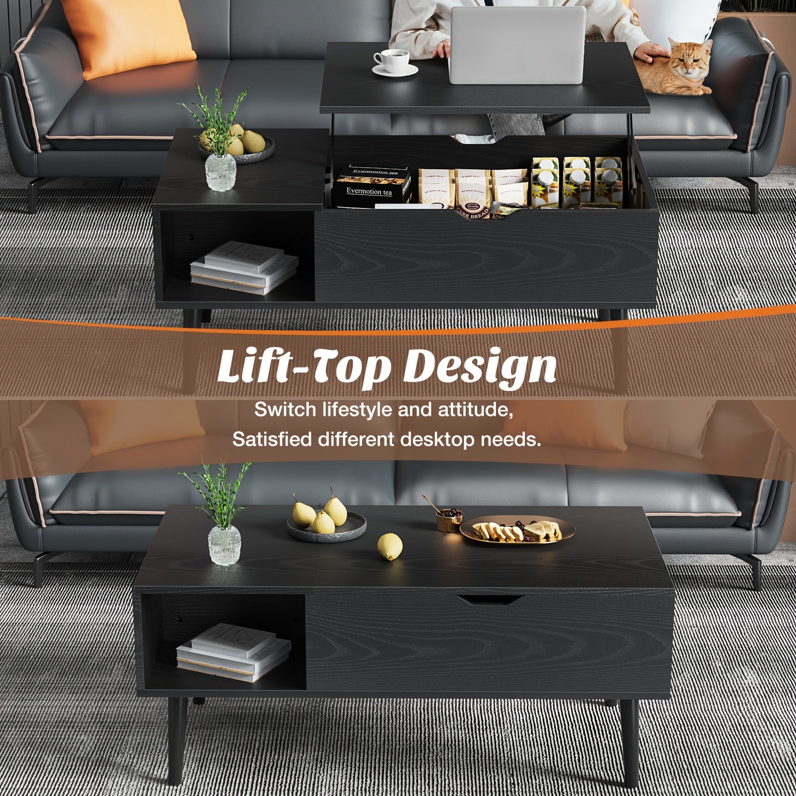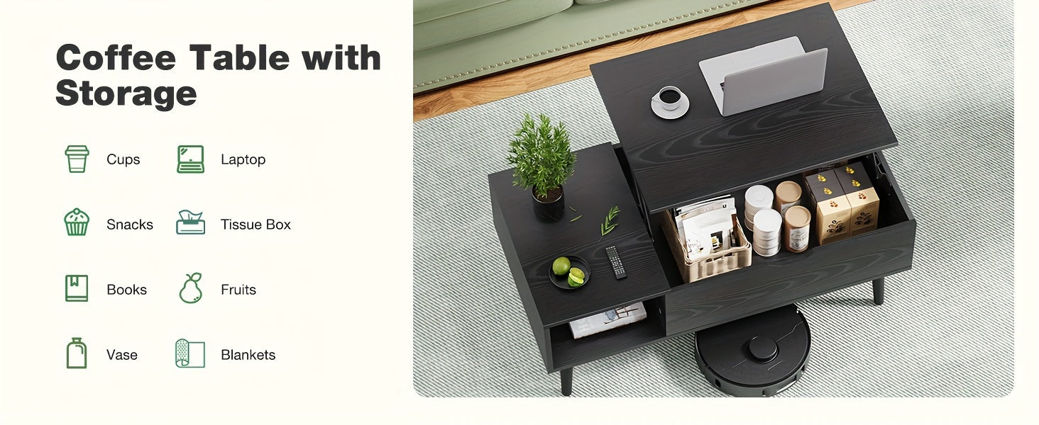 Vintage Lift-Top Coffee Table with Hidden Storage and Adjustable Shelf - Durable Wood, Ideal for Living Room