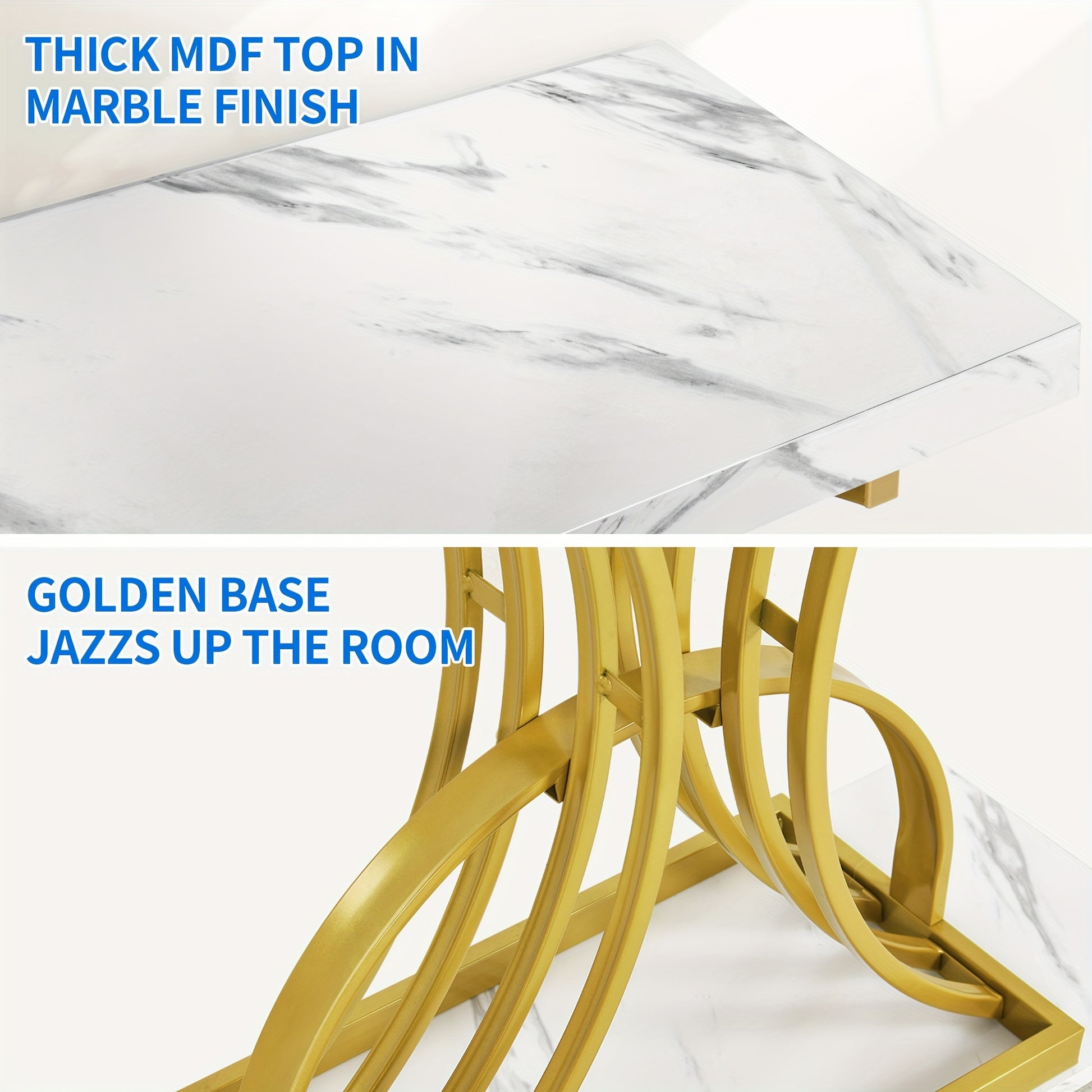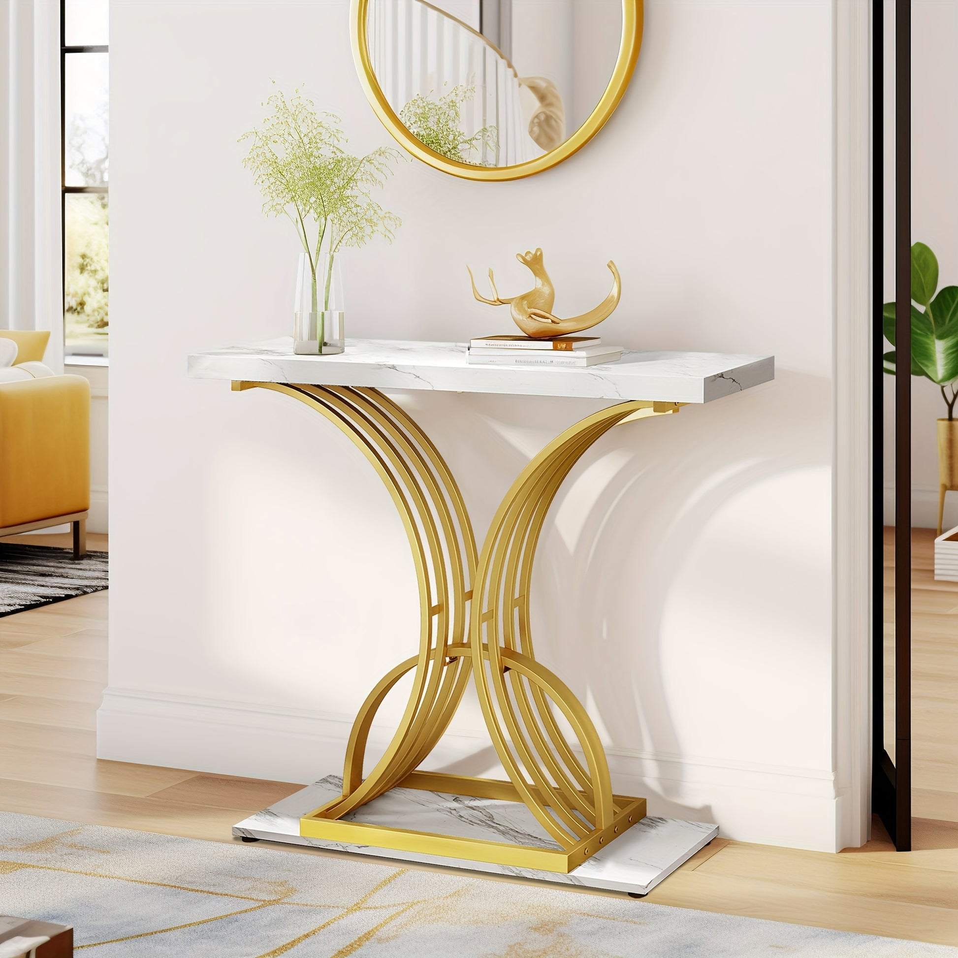 Xelsyo DEXTRUS 39" Console End Table with Faux Marble Top, Side Table for Living Room, Entryway, Gold